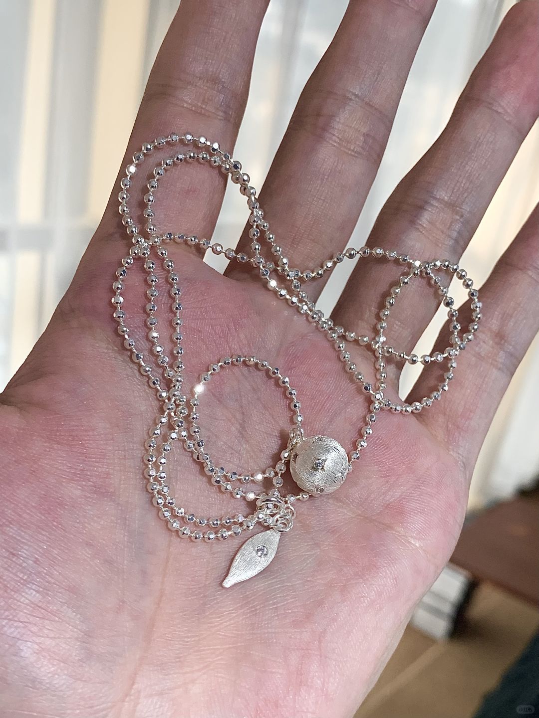 Red Riding Book Explosions Brushed Star Mans Small Silver Bead Necklace Women's Ancient Method Heavy Industry Flash Point Drill Delicate Round Ball Woolen Chain