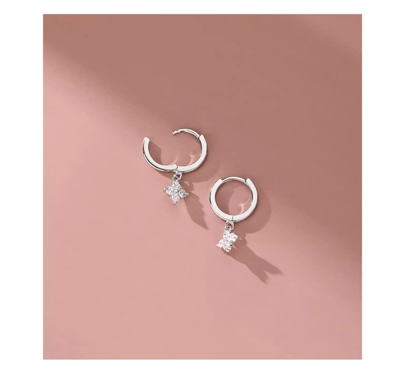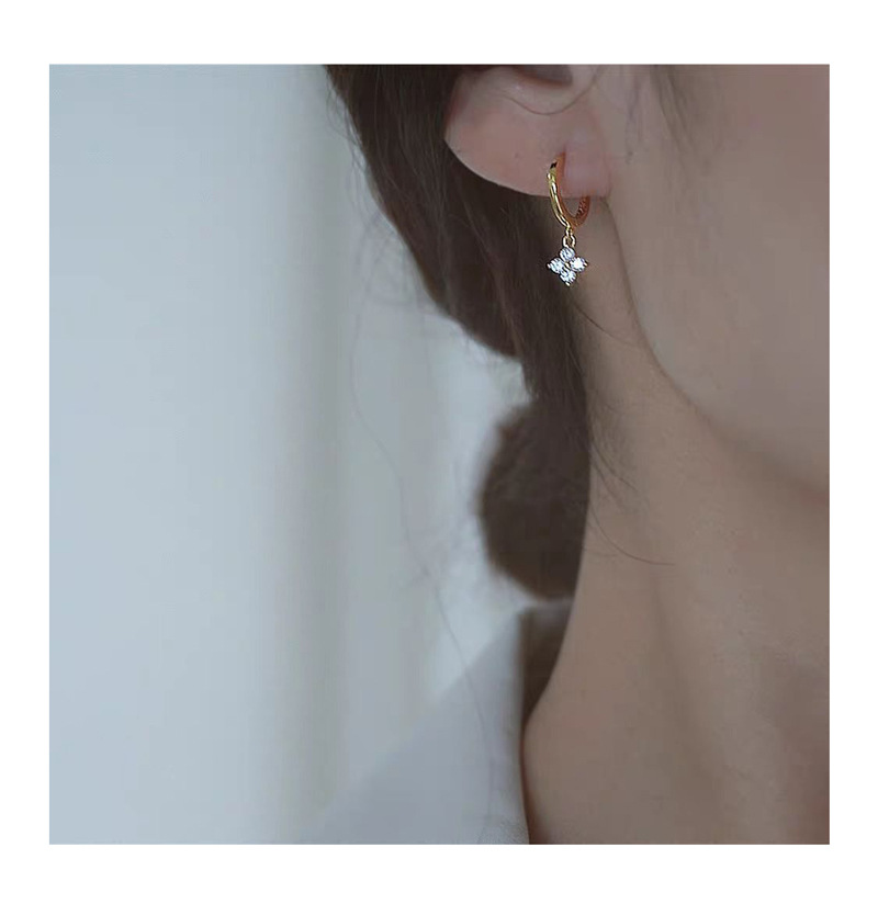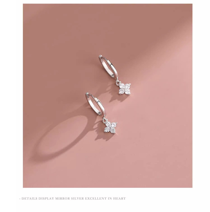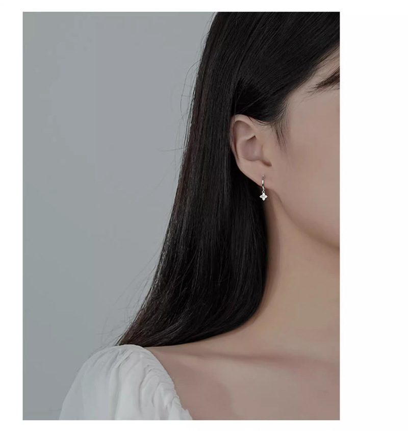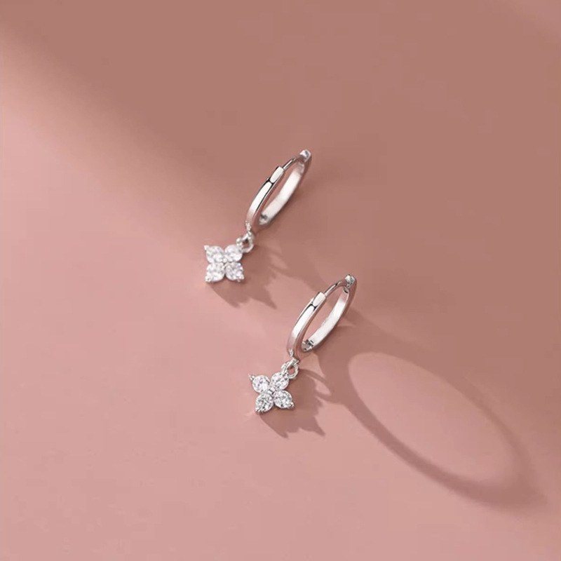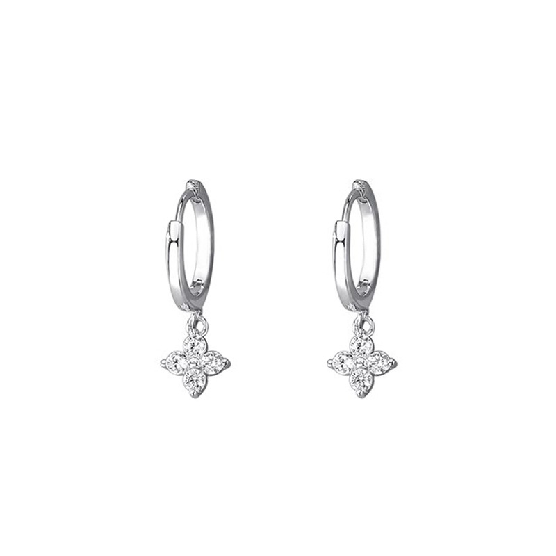 Color: Four-leaf flower earrings-white gold