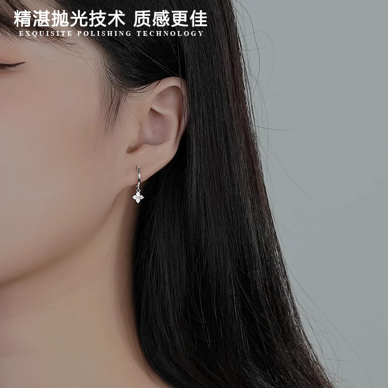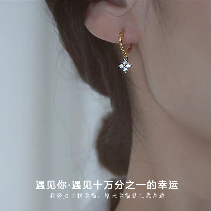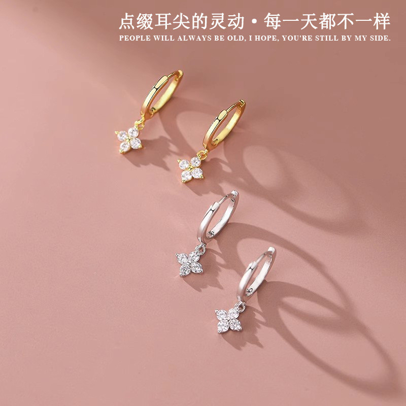Four-Leaf Flower Earrings, Floral Sweet Earrings, Korean Style Niche High-End Design Earrings, Simple and Versatile Accessories