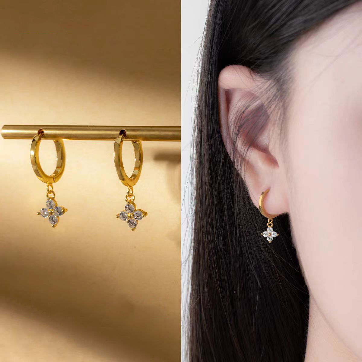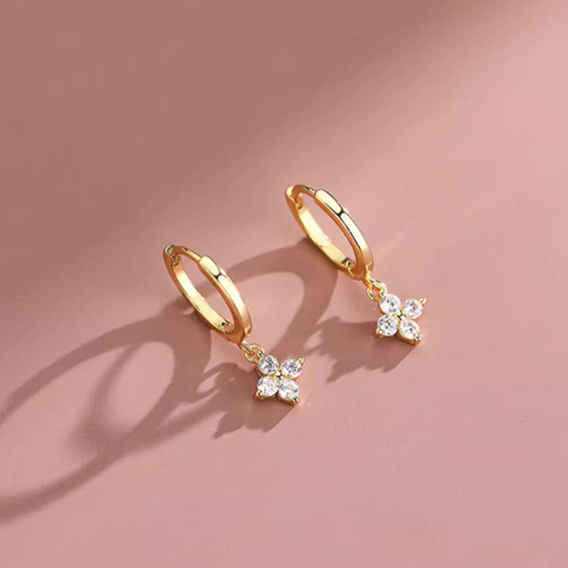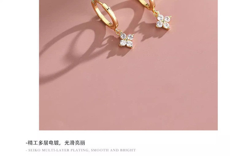 Color: Four-leaf flower earrings-gold