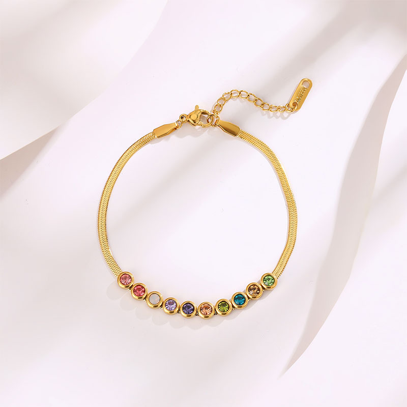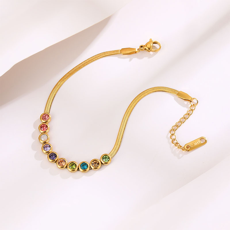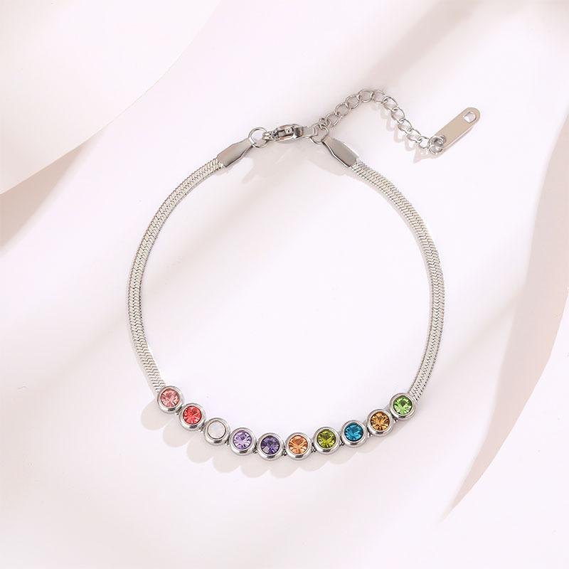 French Temperament High-end Sense Color Diamond-encrusted Titanium Steel Bracelet Women's Personalized Fashion Flat Snake Chain Bracelet Cyber Celebrity Bracelet