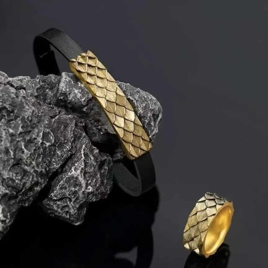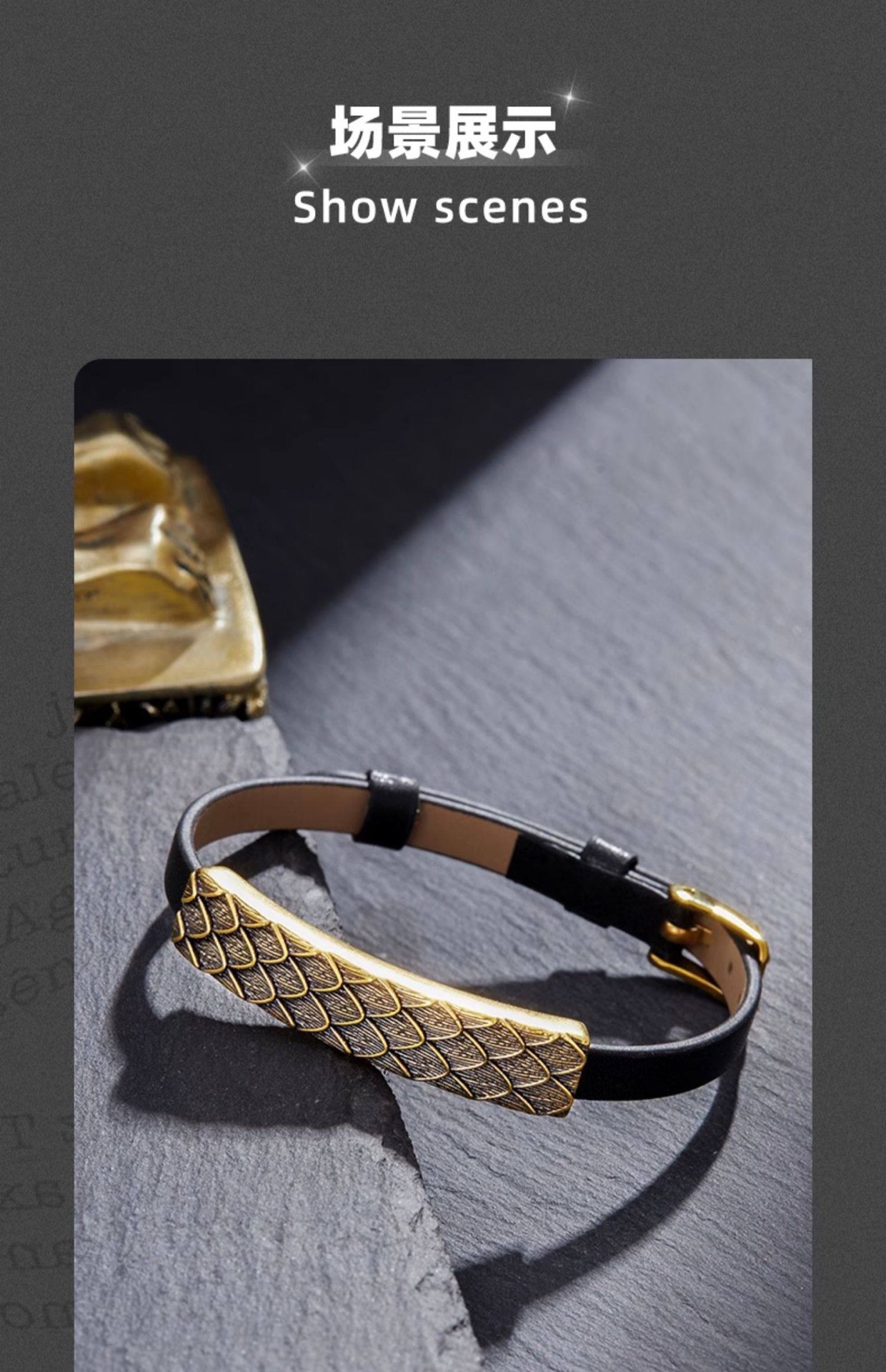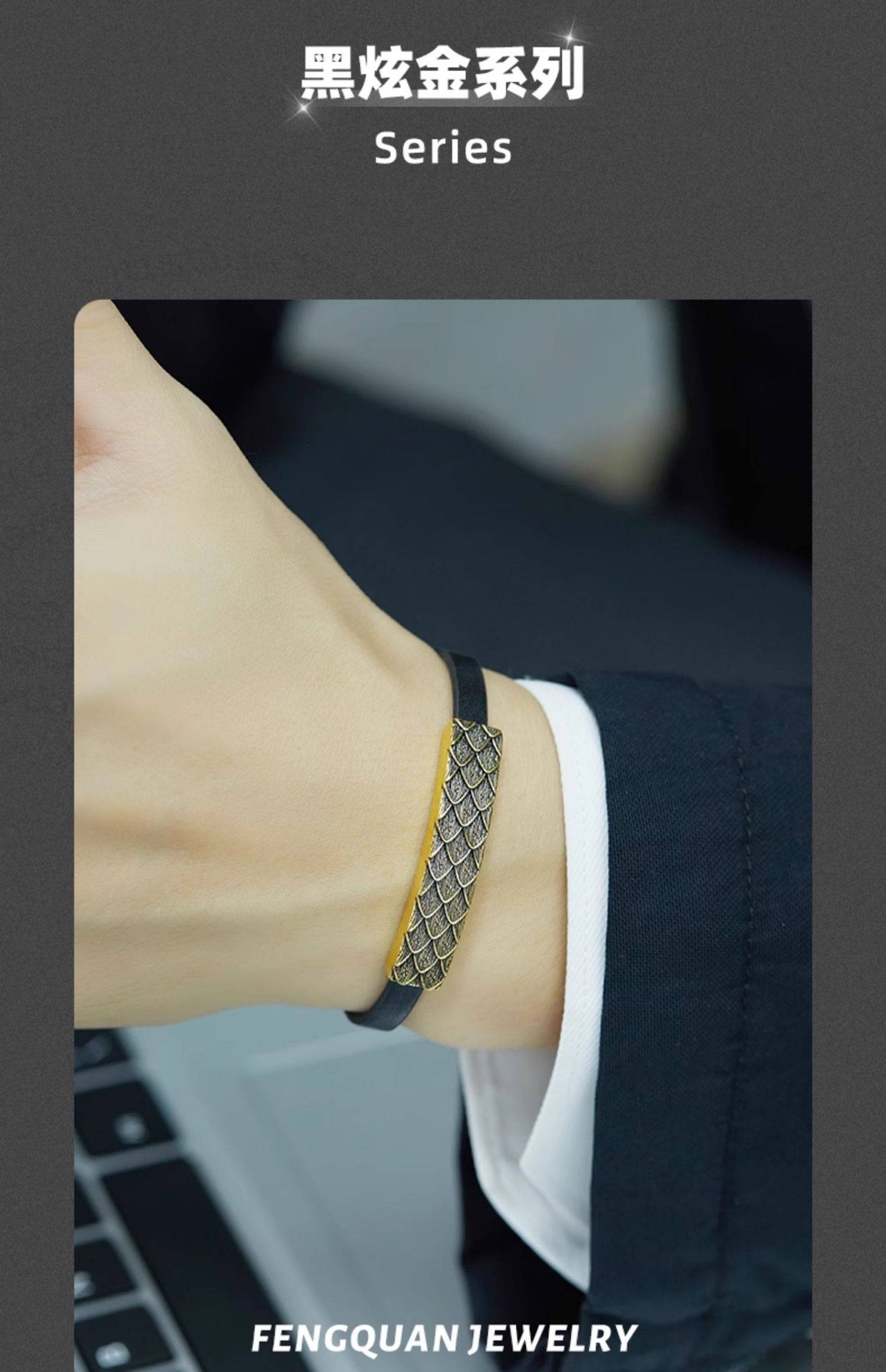 Boys Black Dragon Scale Bracelet Men's Cool Black Fashion Couple's Dragon Bracelet High-end National Fashion Retro Fashion Simple