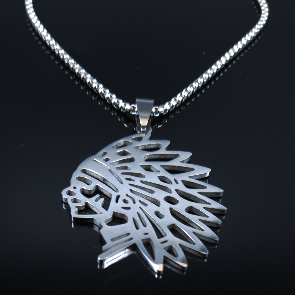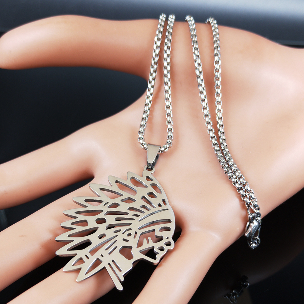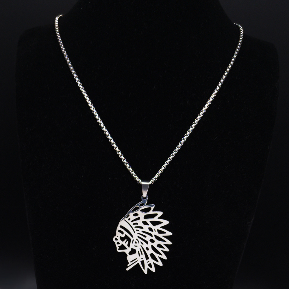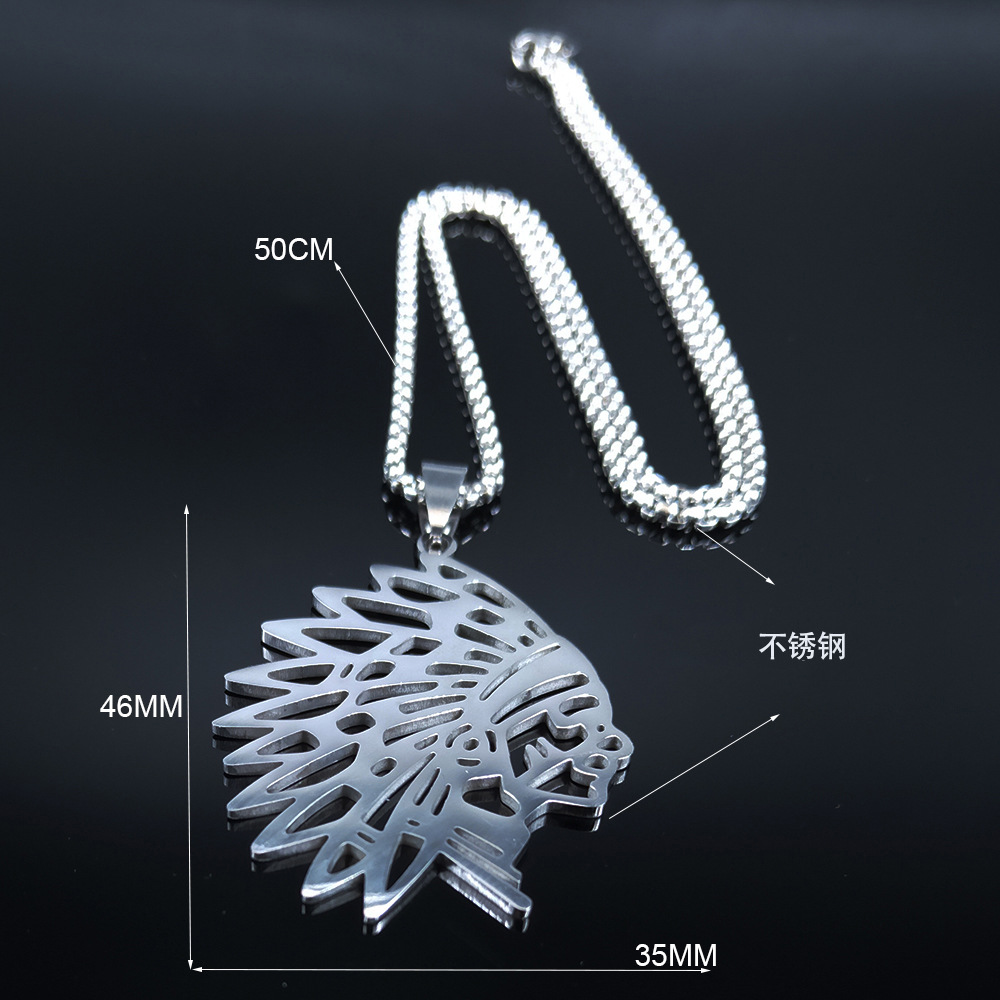 Cross-border New Indian Chieftain Head silver Stainless Steel Necklace Primitive Tribal Chieftain Pendant Jewelry
