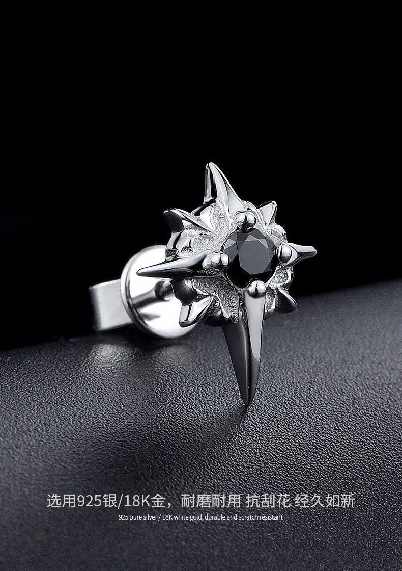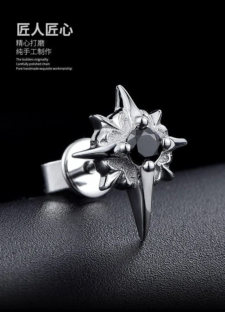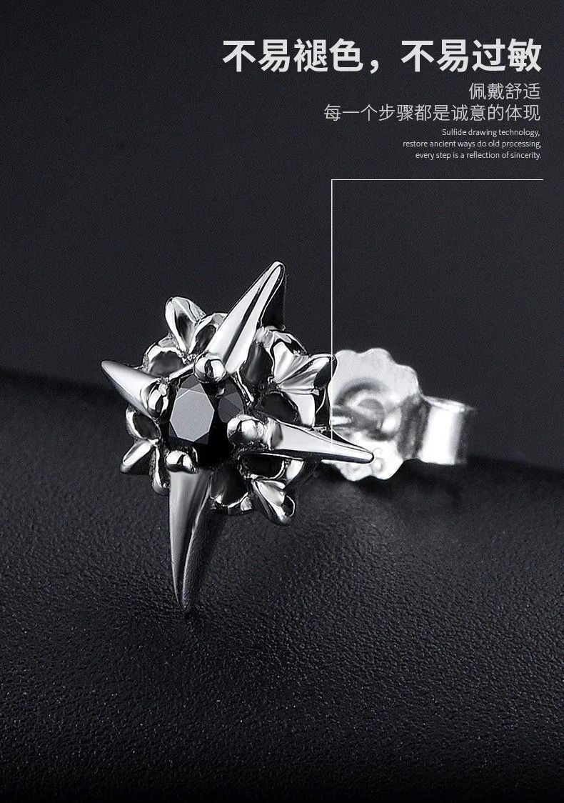 519 men's fashionable personality men's European and American hip-hop black ruffian handsome personality retro earrings temperament