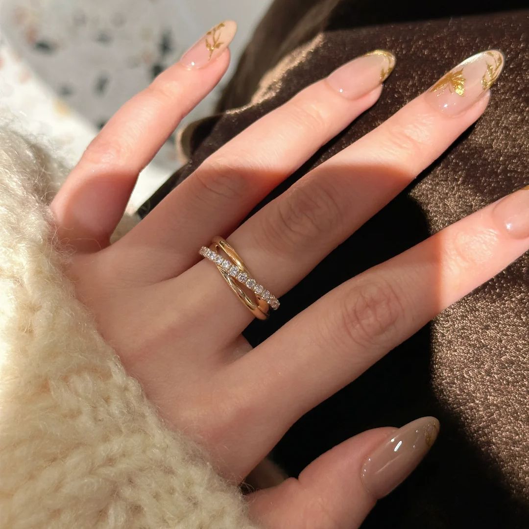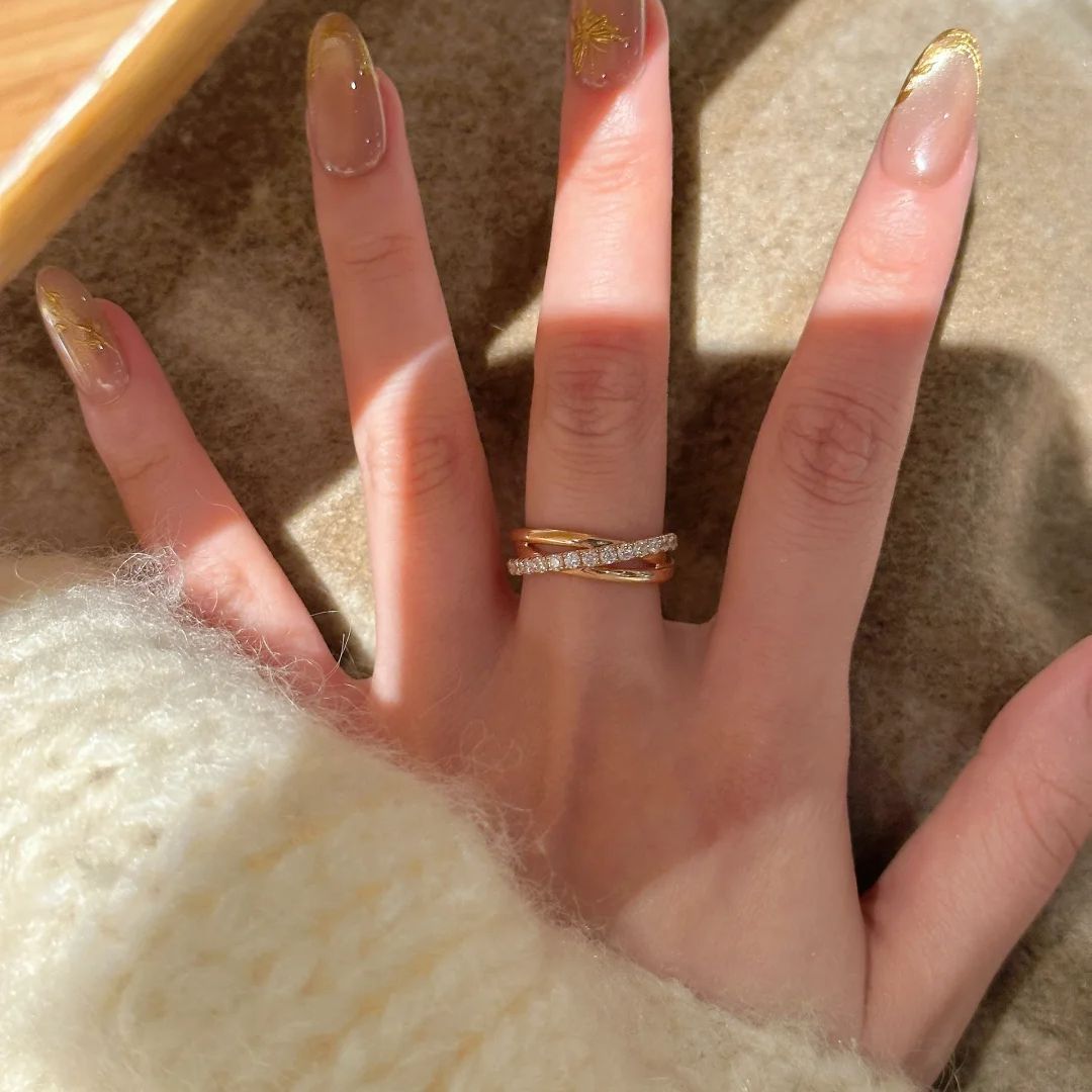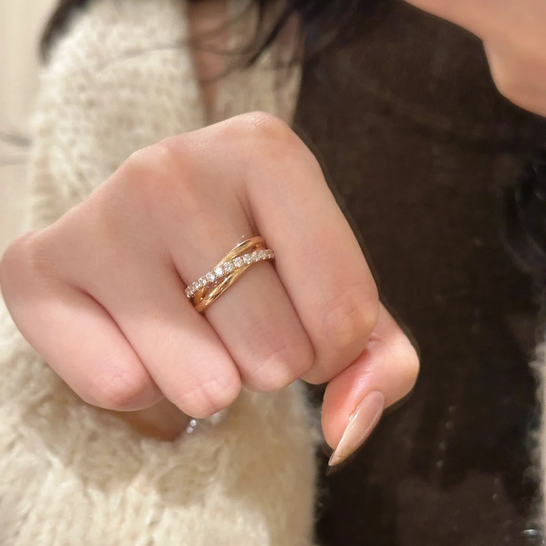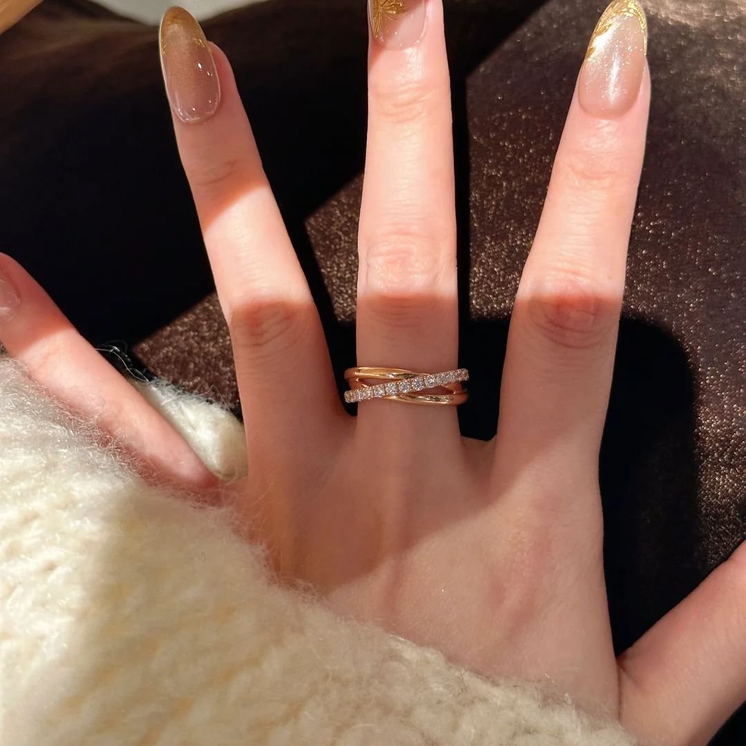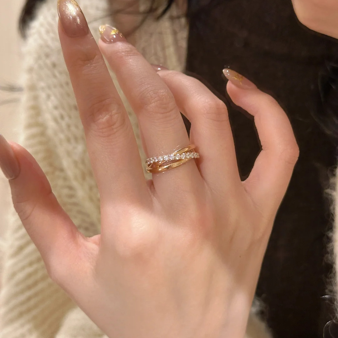 Light Luxury Elegant Three-Circle Cross Inlaid Rai Diamond Ring Niche Design Fashion Personality Open Finger Ring for Women