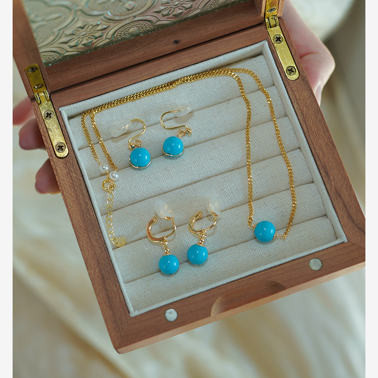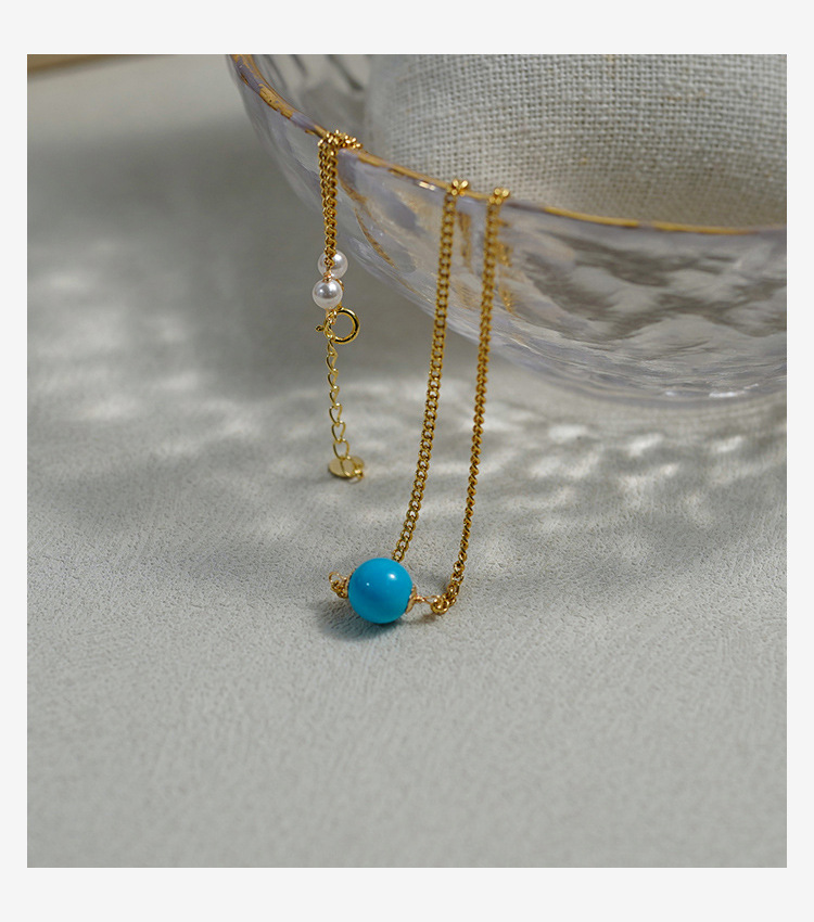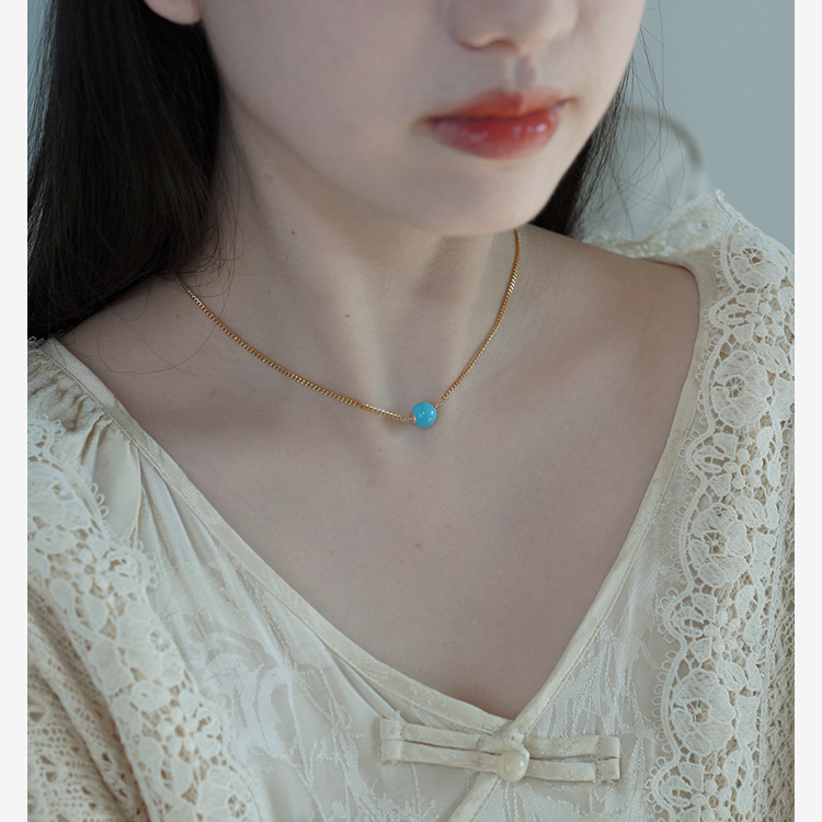 Niche Light Luxury Fashion Sense Single Blue Turquoise Necklace Retro French Style Dopamine Clavicle Chain National Fashion 41222