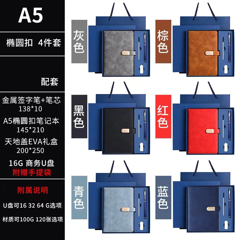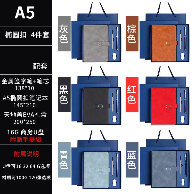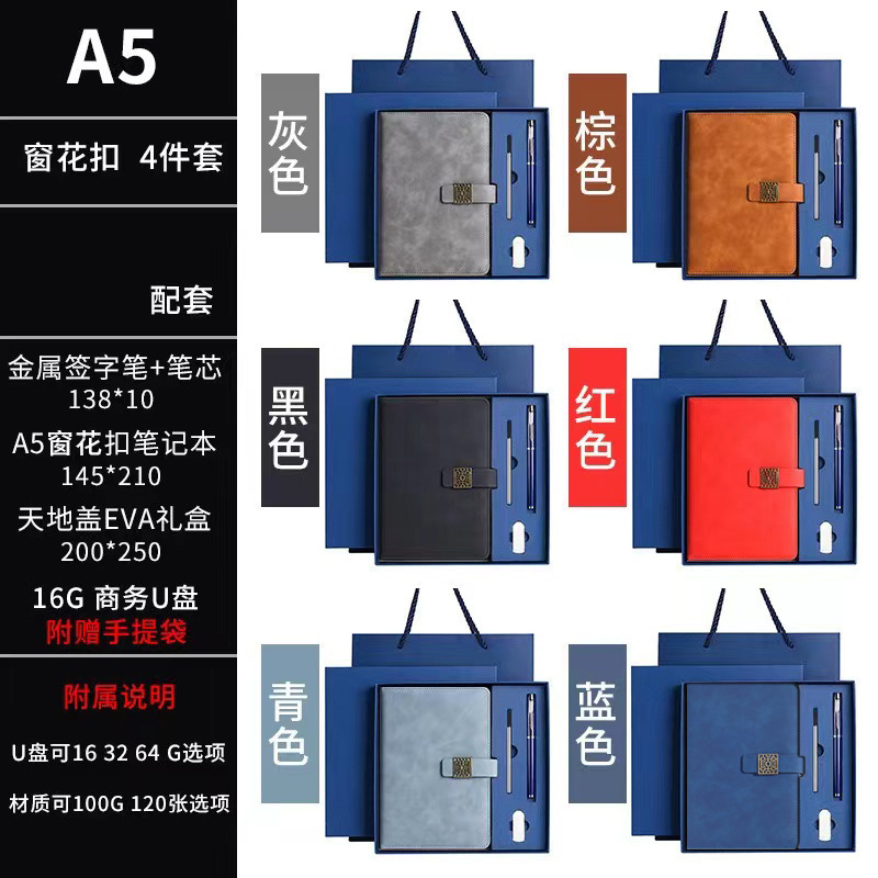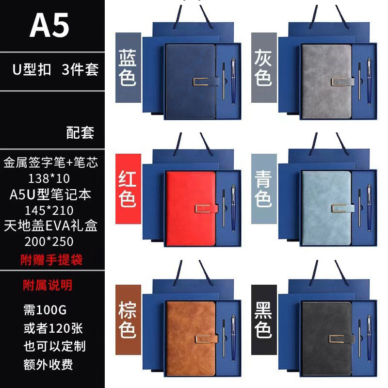 Cover color: U-shaped buckle-4 set [book + metal pen + refill + u disk]