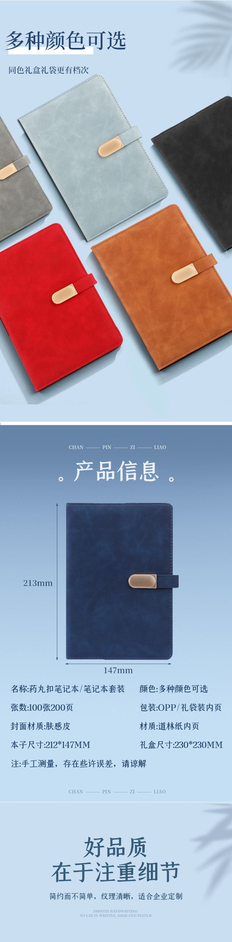 Cover color: Pill buckle-4 set [book + metal pen + refill + u disk]