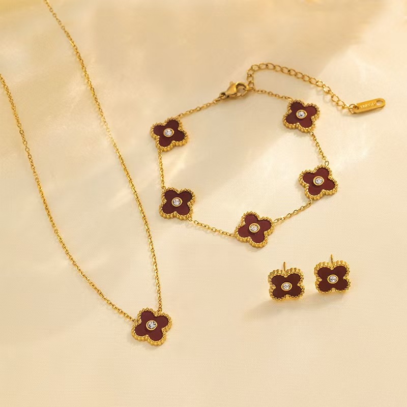 Color: Diamond three-piece set [burgundy]