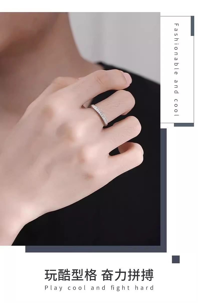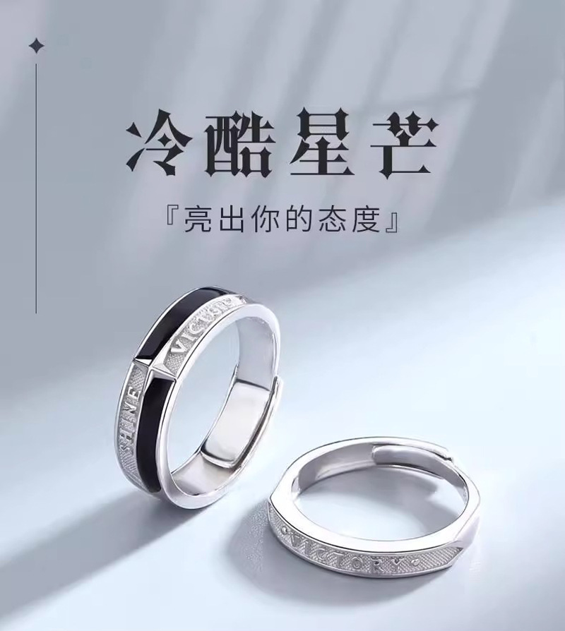 Yabi Feng's Old and Cool Starburst Couple Ring Niche Design Live Mouth Adjustable Fashion Stylish Self-Discipline Ring