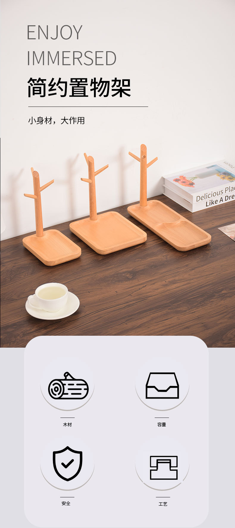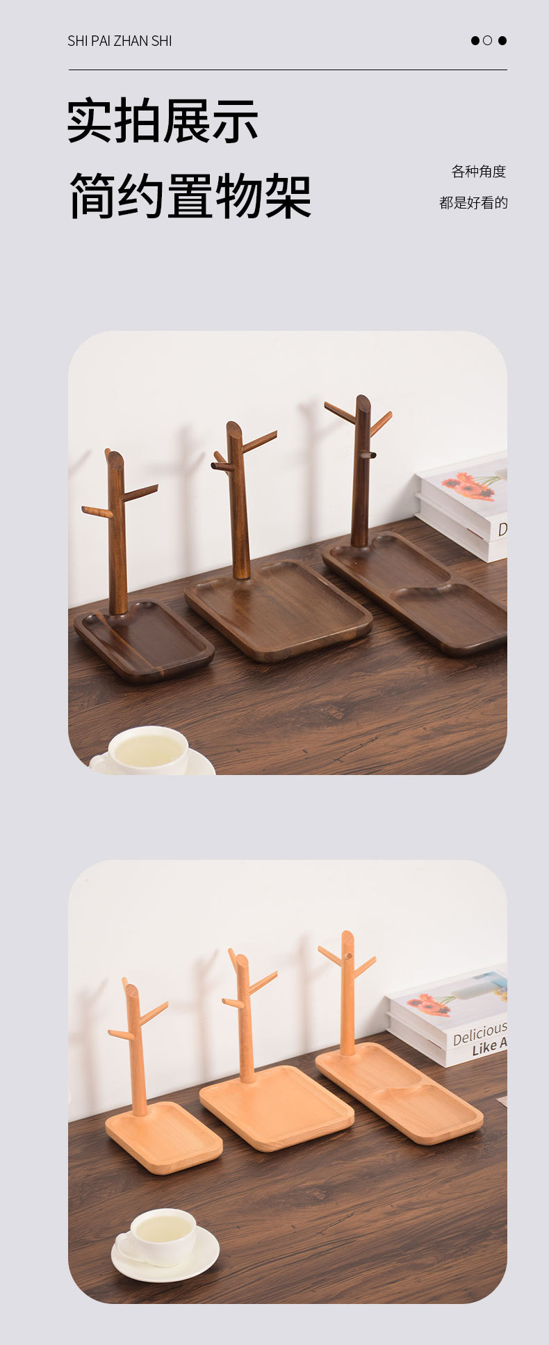 Color: Walnut color tree branch storage tray-long style