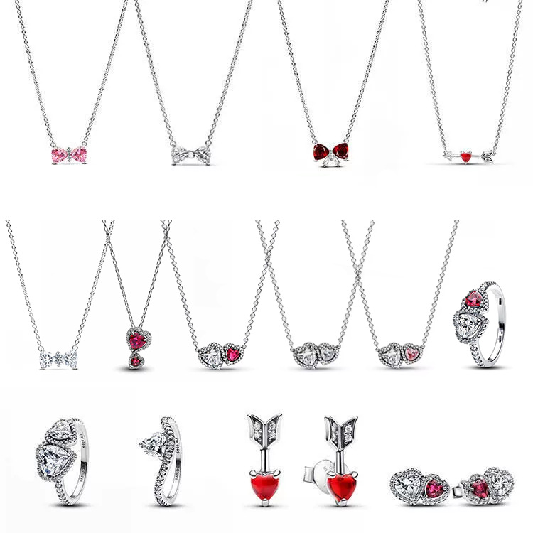 Cross-border Foreign Trade Hot Sale White Copper Silver Plated Panjia Love Series Butterfly Festival Gem suit Women Necklace Earrings Ring