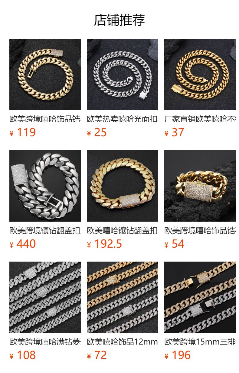 Cross-Border European and American Popular Hip-Hop Cuban Chain 14K Gold Necklace Jewelry Men's High-End Zircon Bracelet Accessories Wholesale