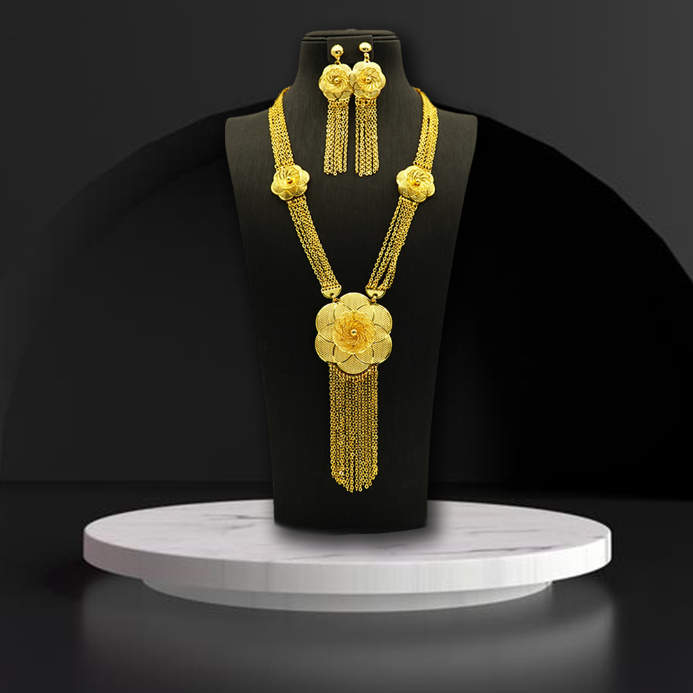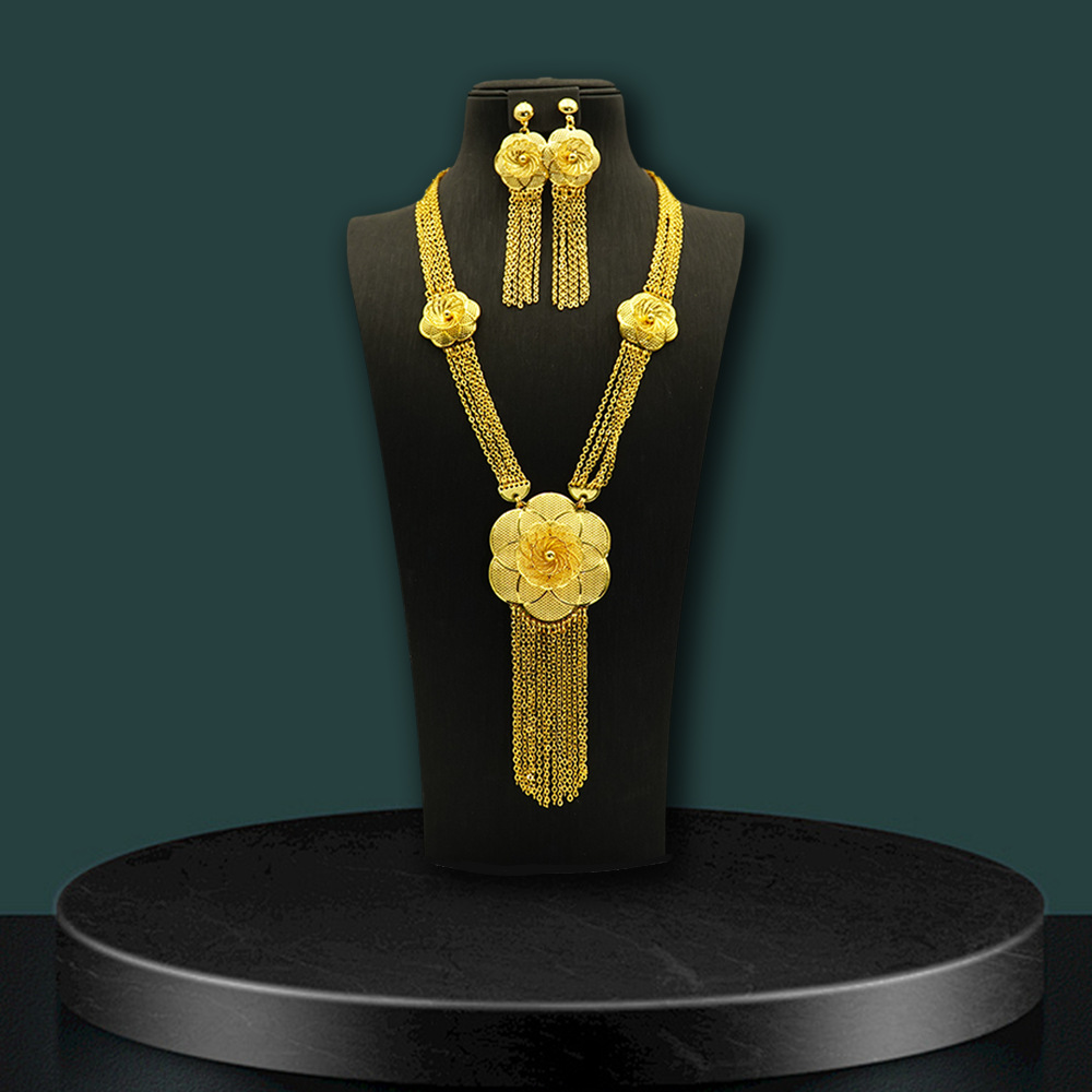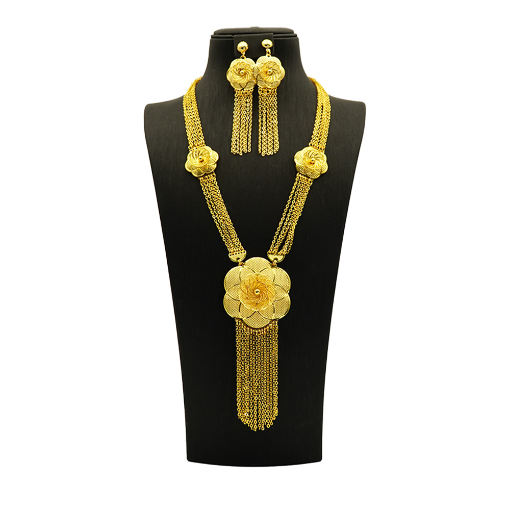 Middle Eastern Hot Selling Fashion Gold-Plated Necklace Earrings Jewelry Set African Dubai Bride Wedding Jewelry Accessories Wholesale