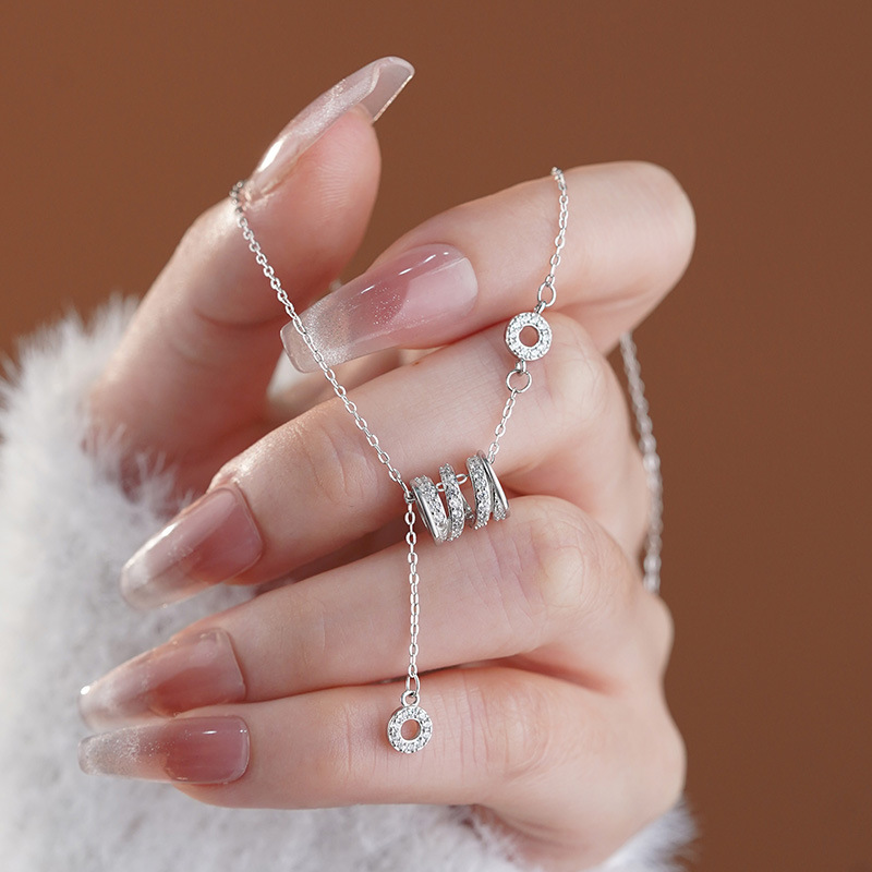 S999 Pure Silver Small Waist Diamond Necklace New Design with High-End Pendant Sweater Chain Dropshipping