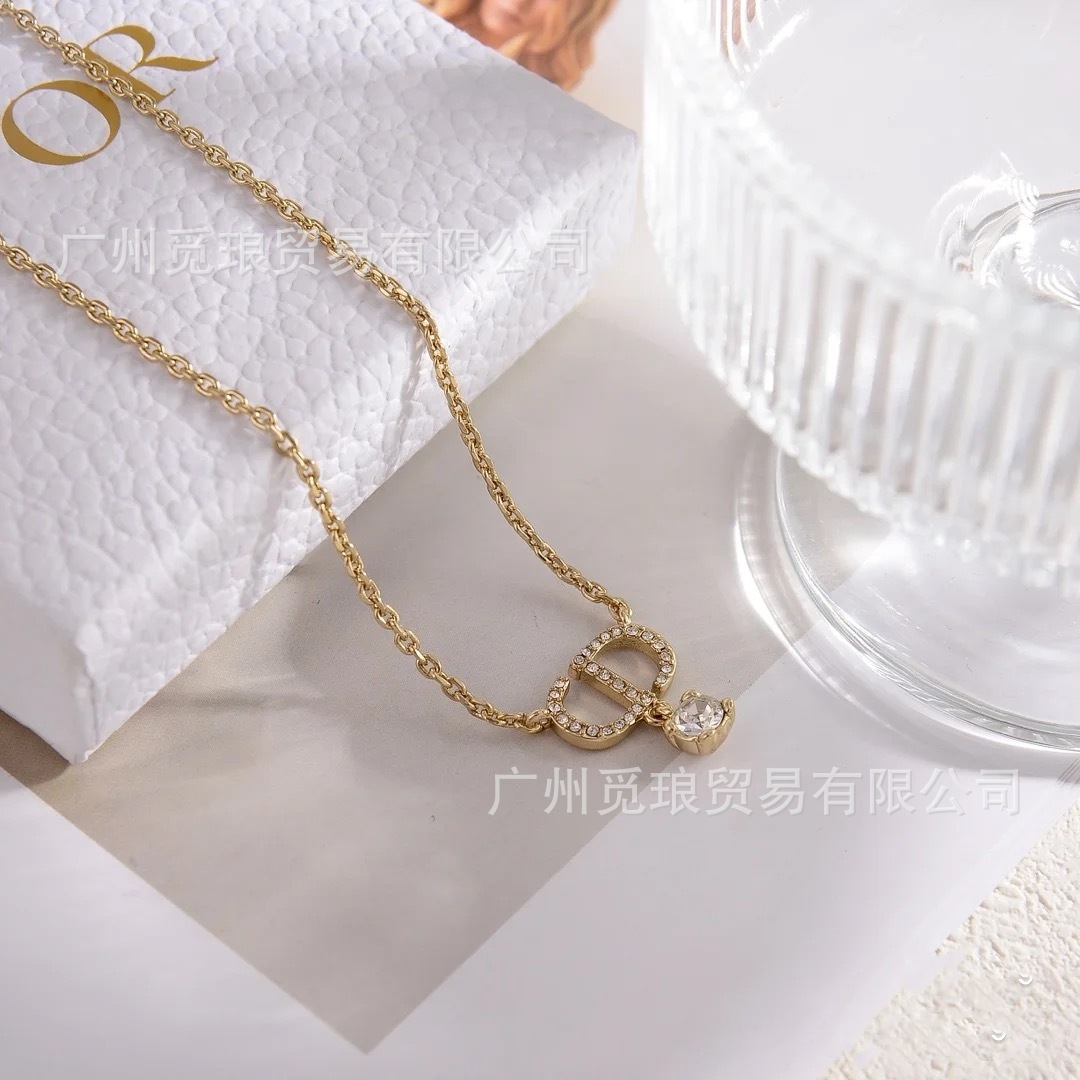 Pair Edition Real Shot Dijia D Letter CD Pig Nose Gold White Diamond suit Necklace Women's Fashion Full Diamond Earrings