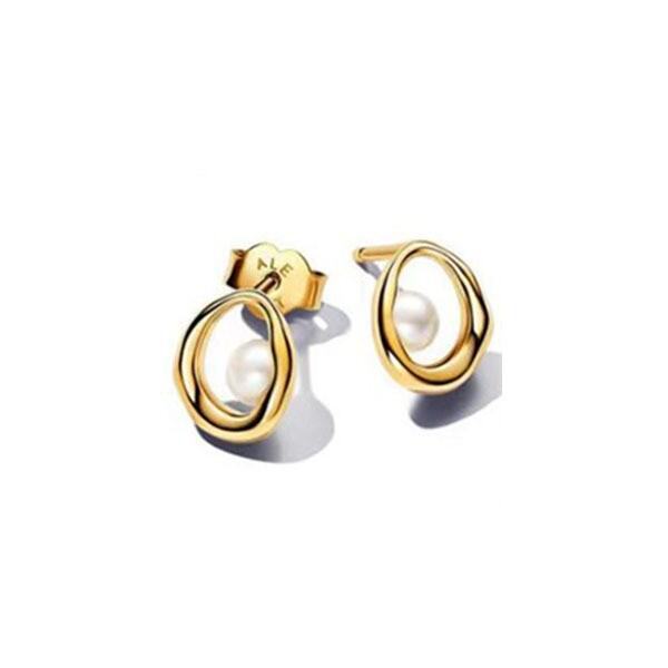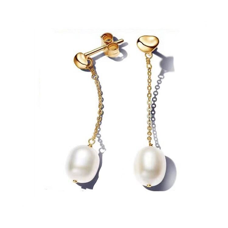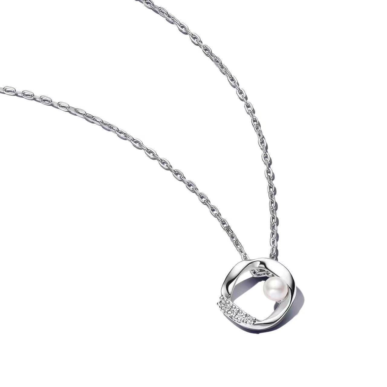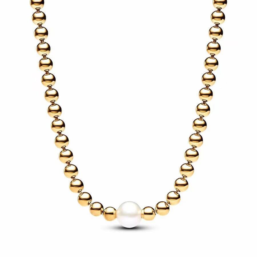Pandora White Copper Plated 925 silver Pearl Necklace Golden Earrings Irregular Female DIY Couple Clavicle Chain