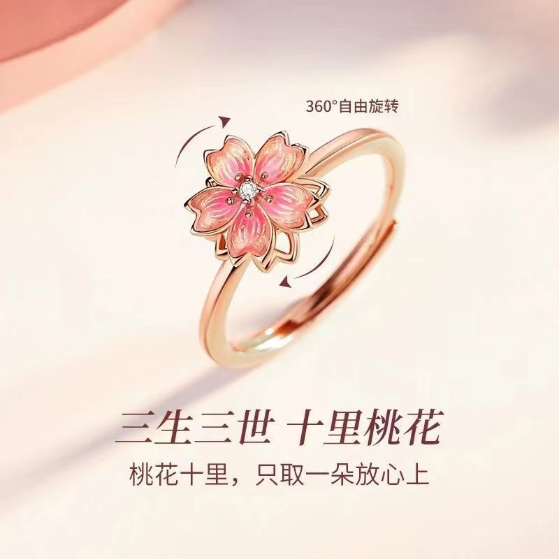 Rotating Peach Blossom Ring for Women, Light Luxury Niche Design, High-End Feel, Cherry Blossom Fashion, Rotatable Ring, Gift for Girlfriend, Jewelry