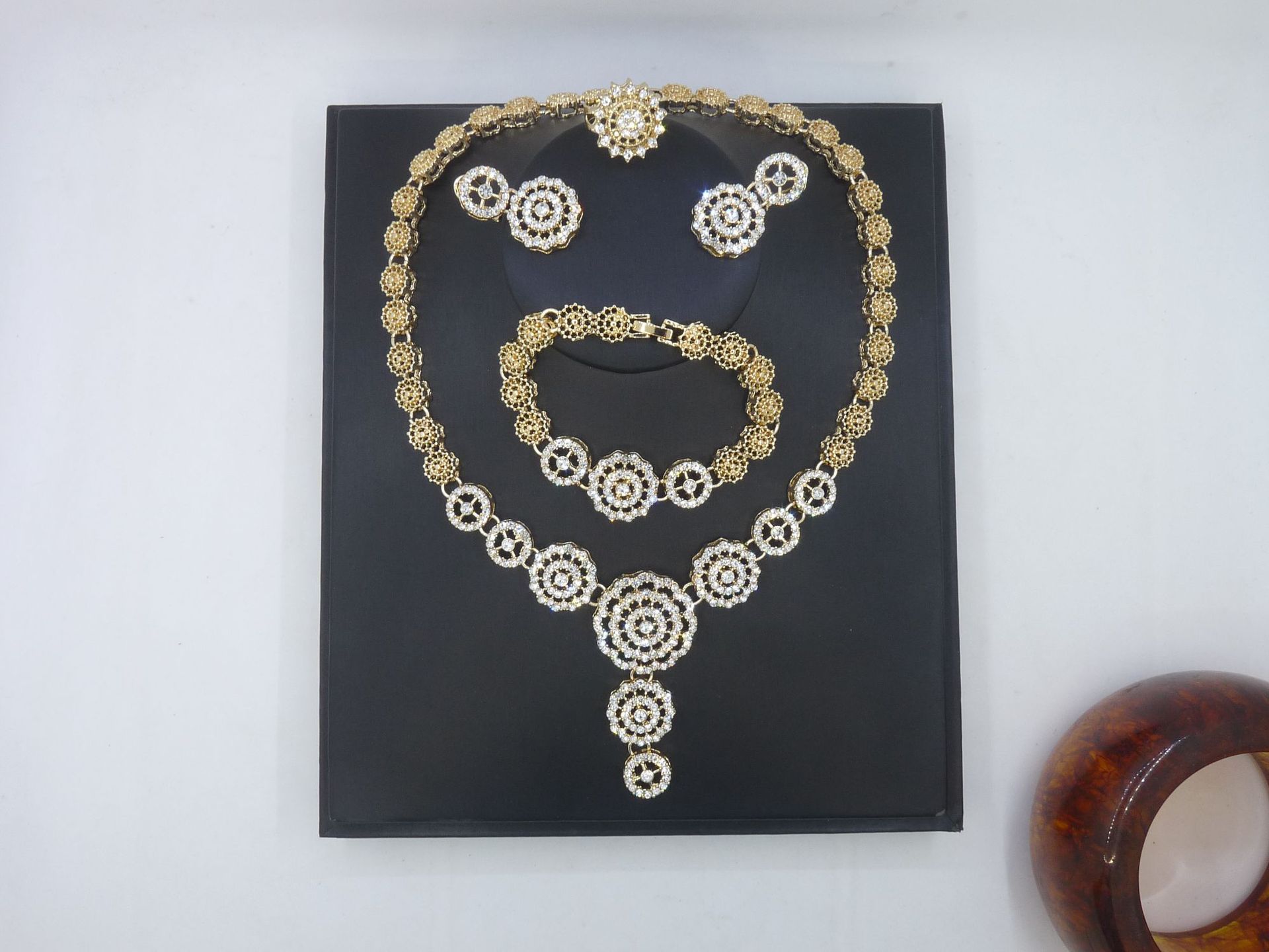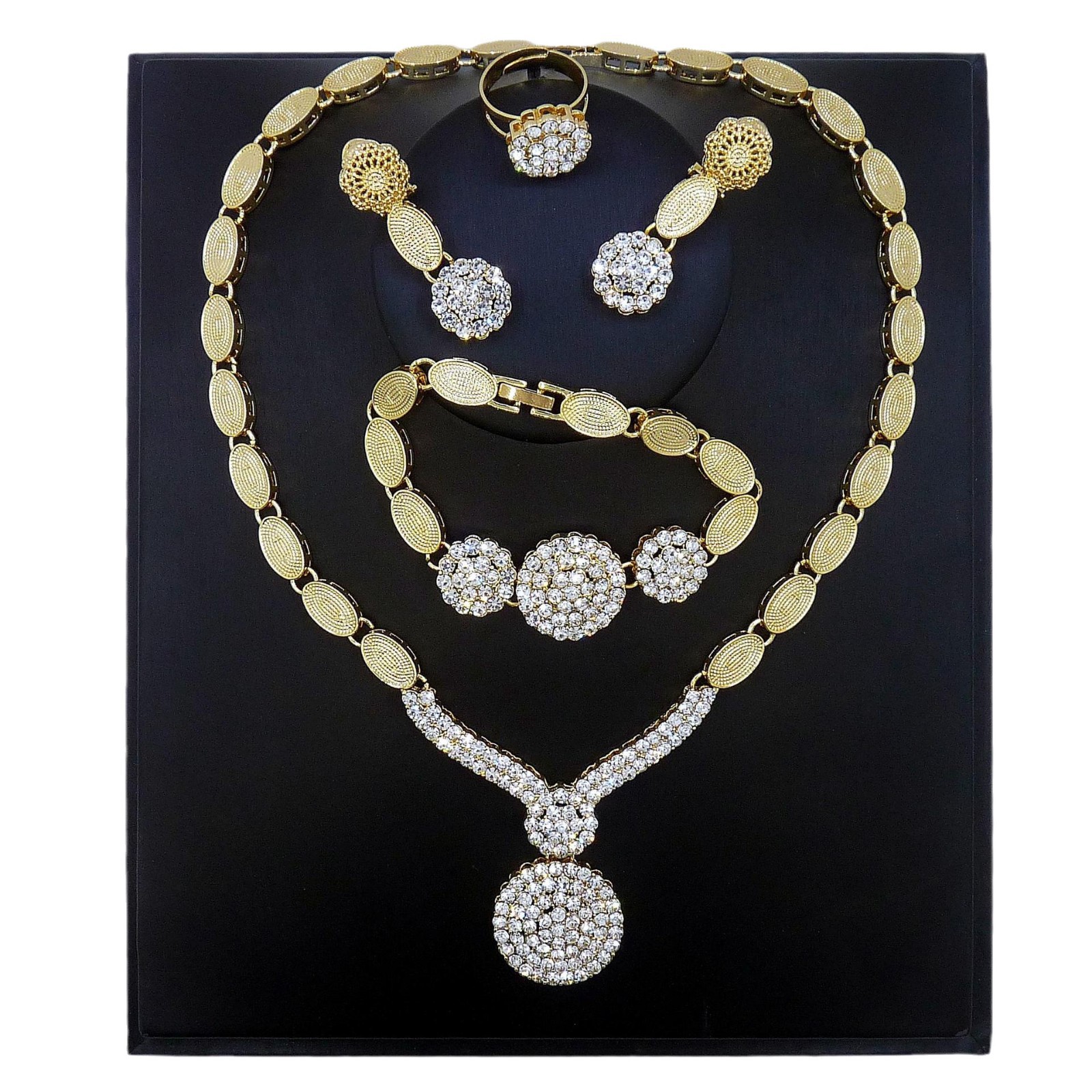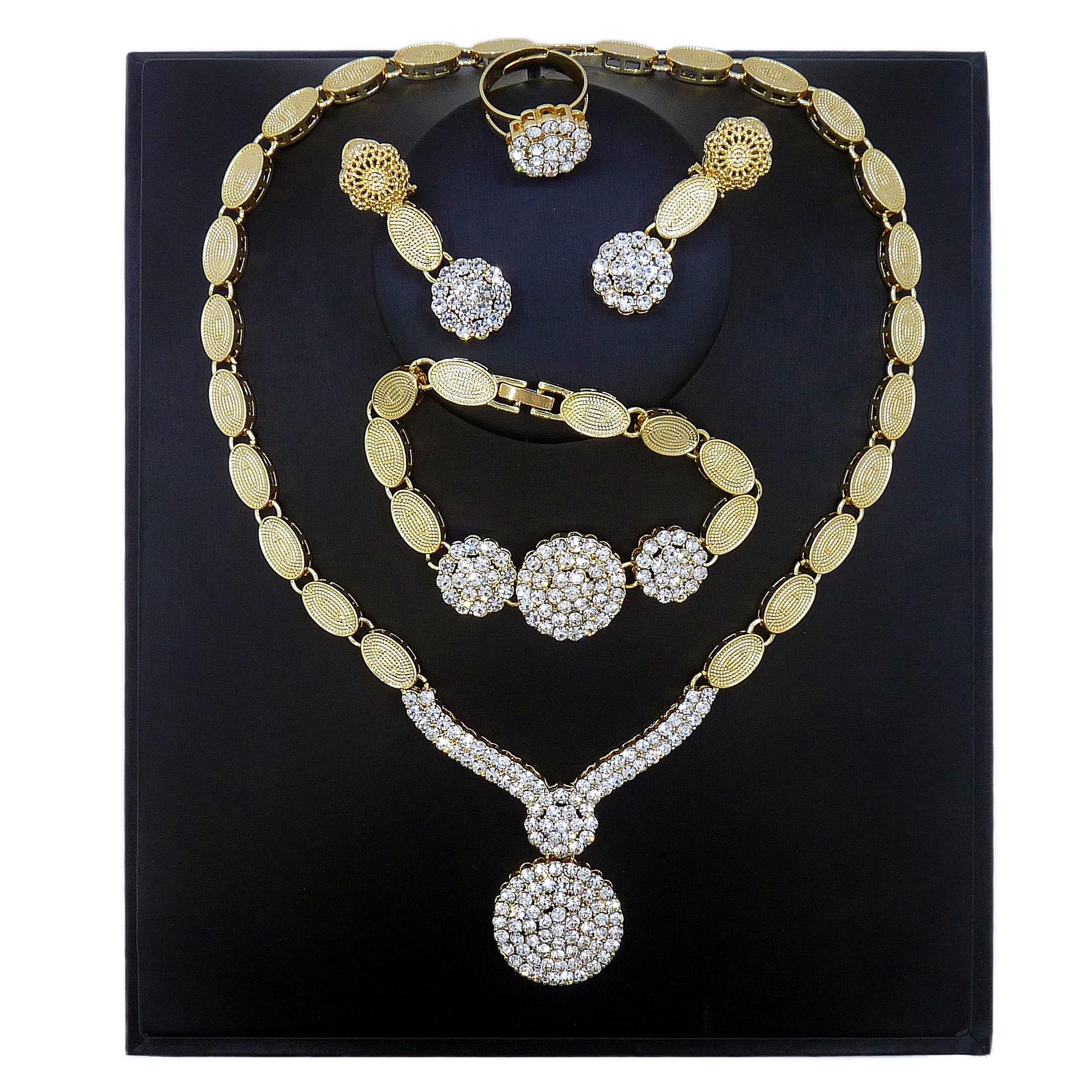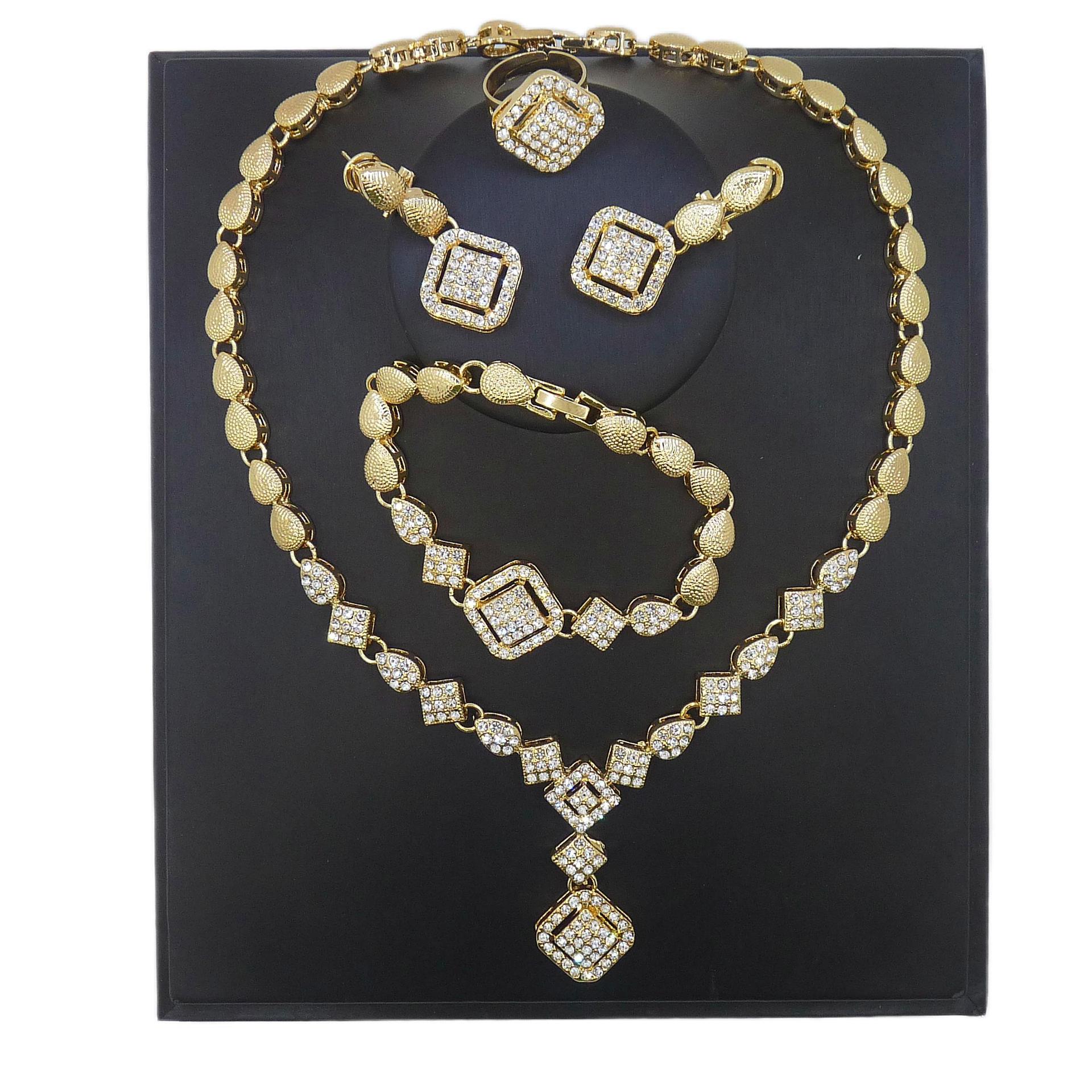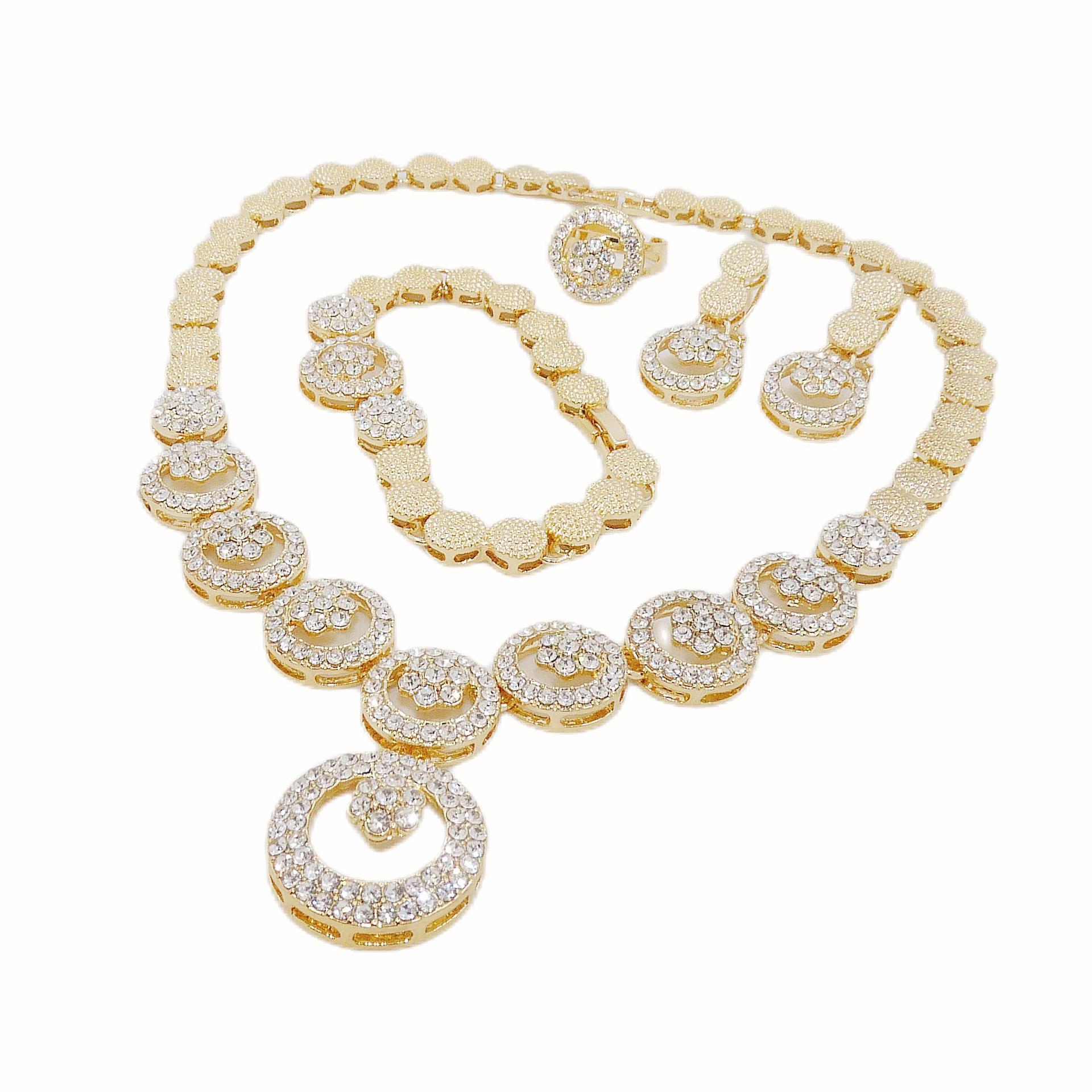 Factory Direct Sales European and American Dubai Bridal Wedding Jewelry Set African Necklace Bracelet Gold-Plated Earrings Bracelet New Style