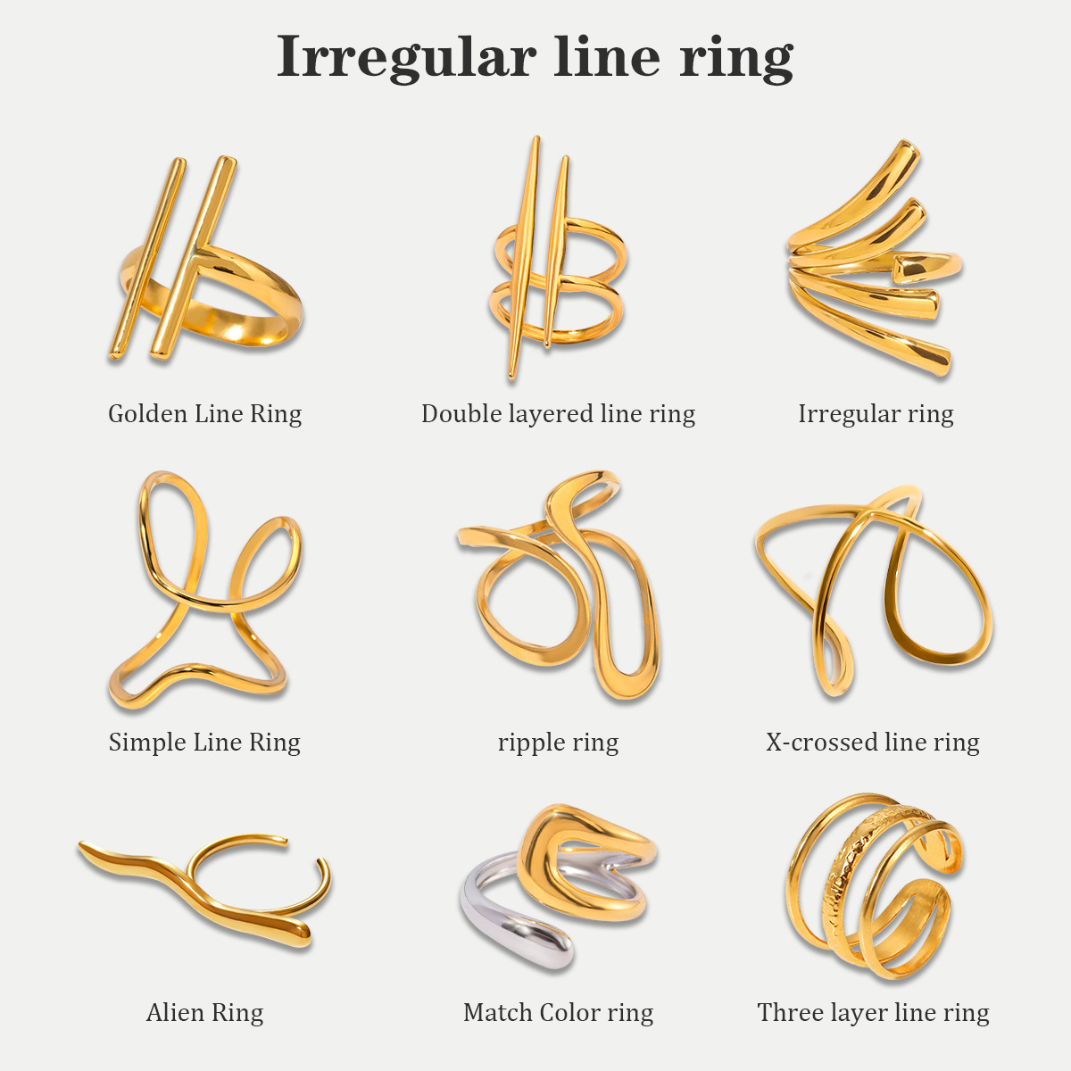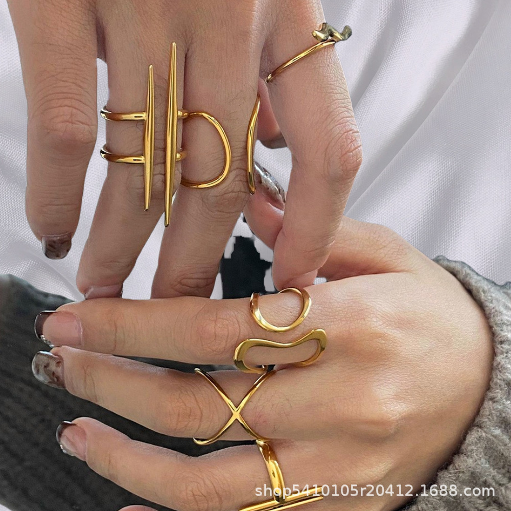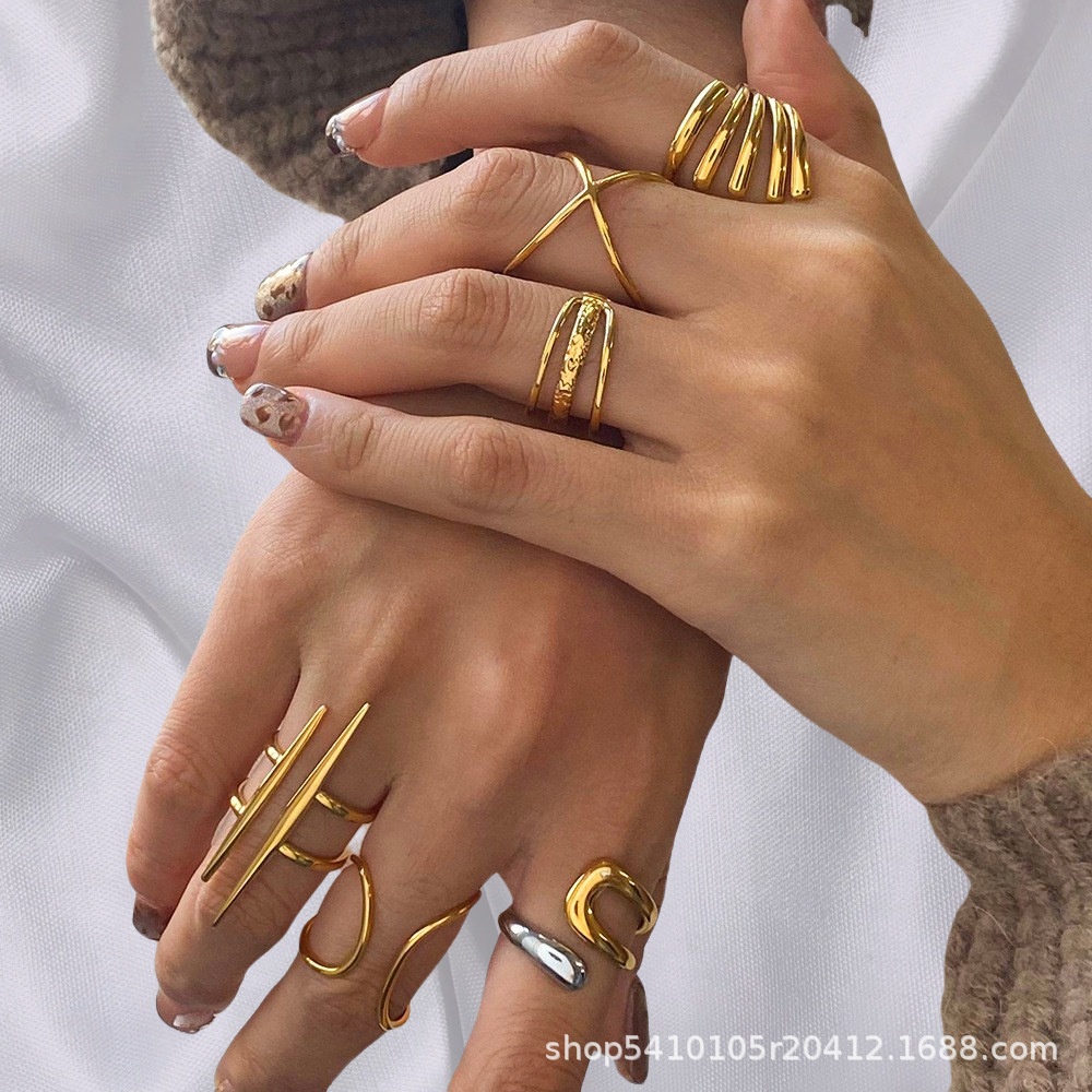 European and American Stainless Steel Asymmetrical Ring Niche Open Ring Titanium Steel Hand Jewelry Cross-Border Ring Ai