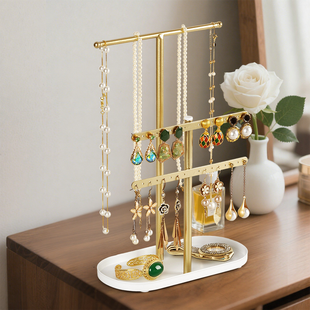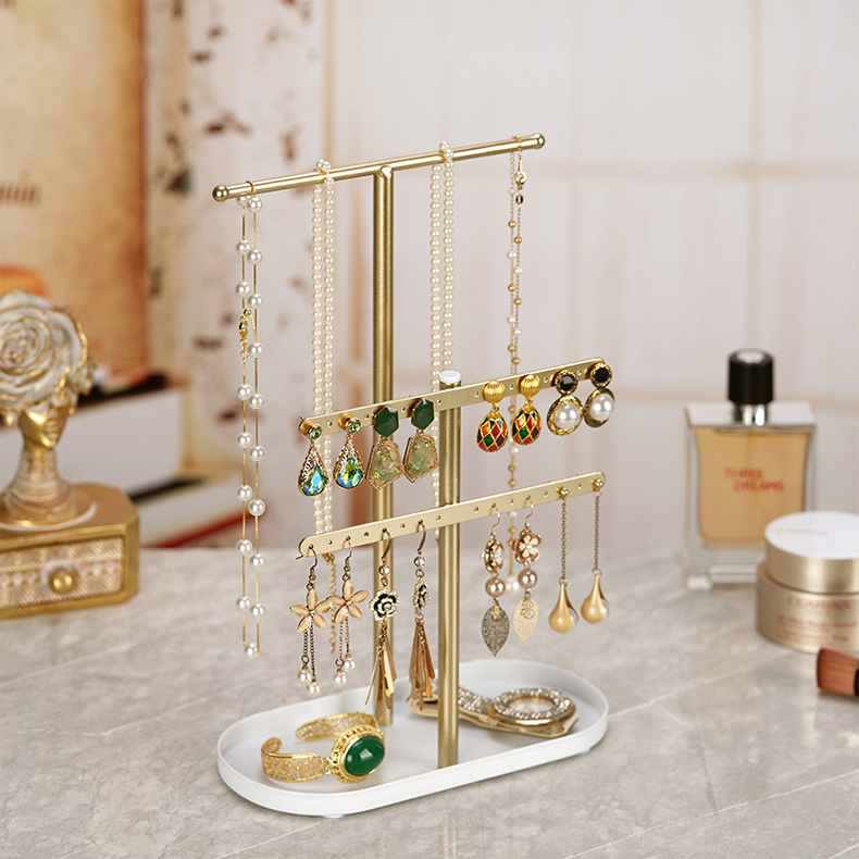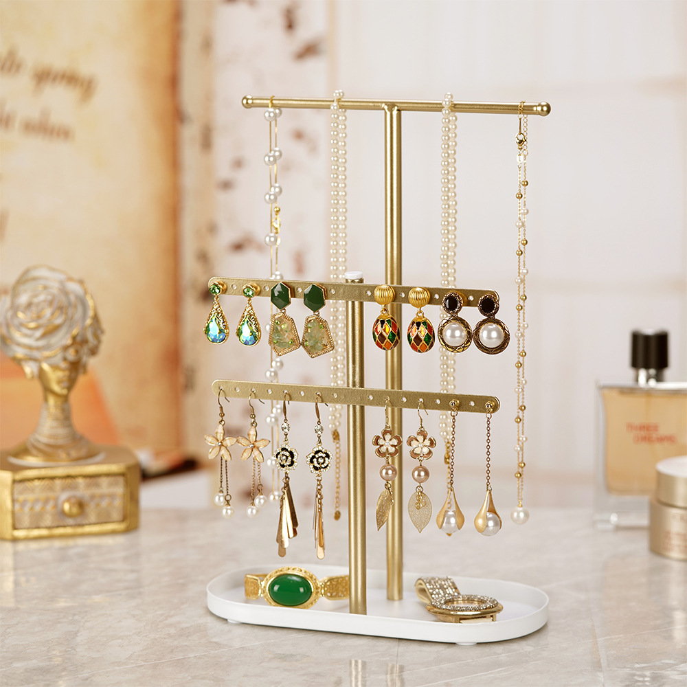 Amazon White Gold Jewelry Rack 4-Layer Earring Rack Ring Bracelet Jewelry Storage Necklace Jewelry Display Rack