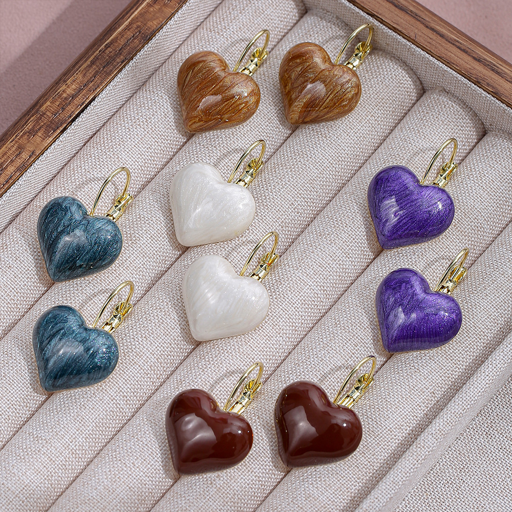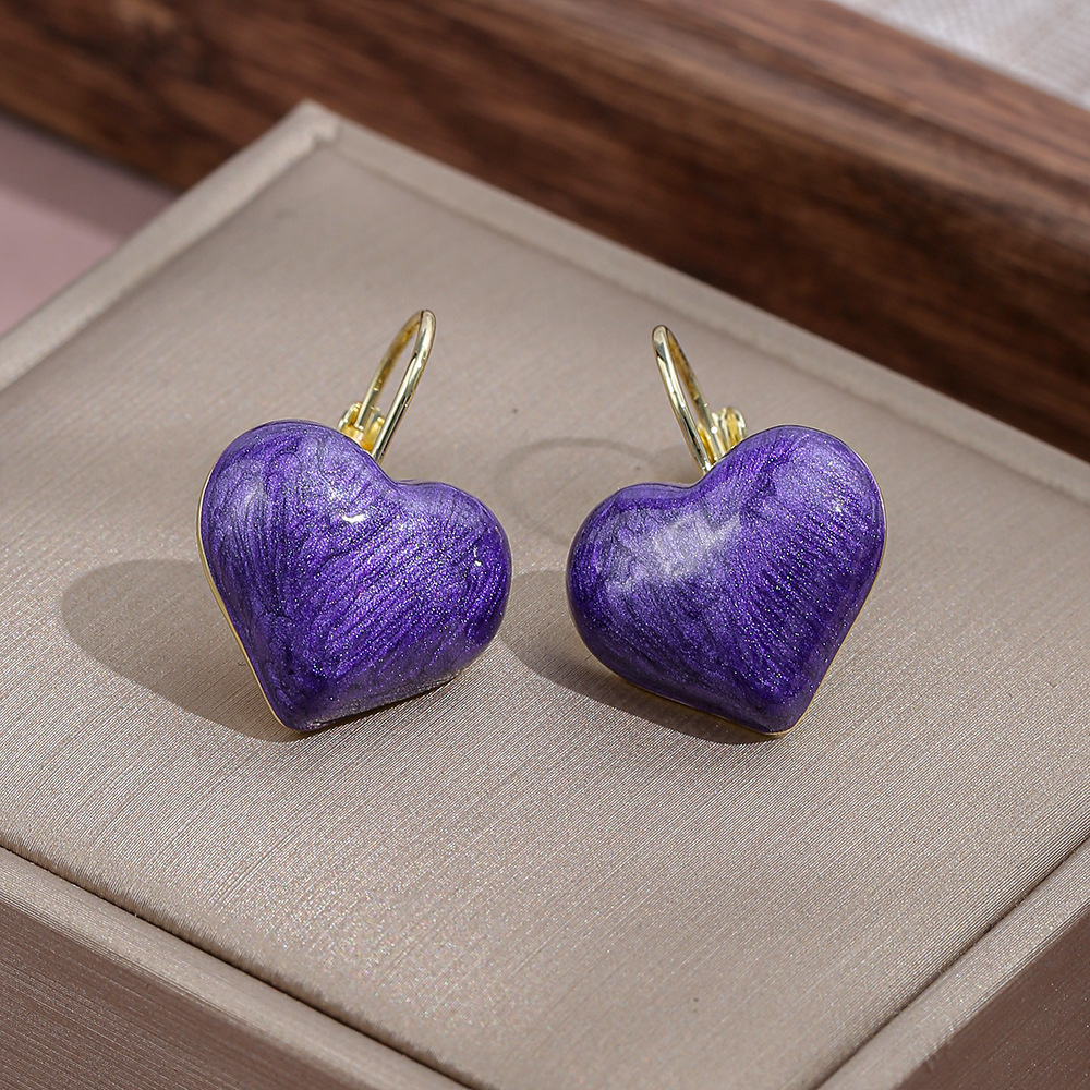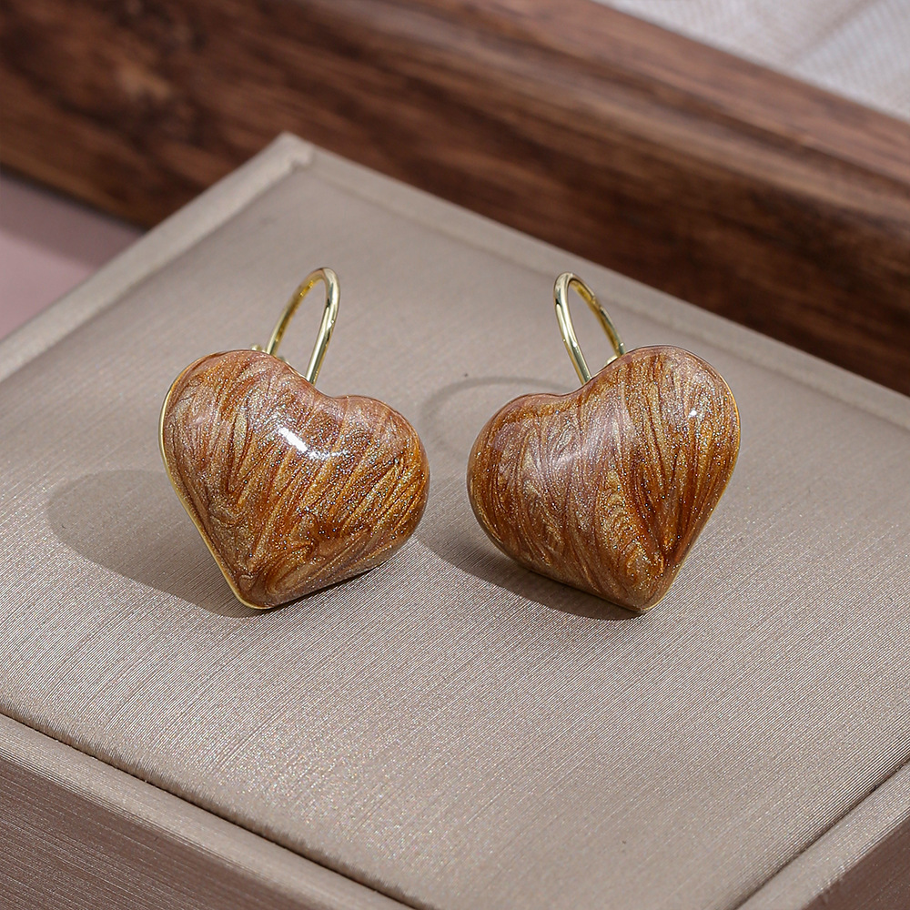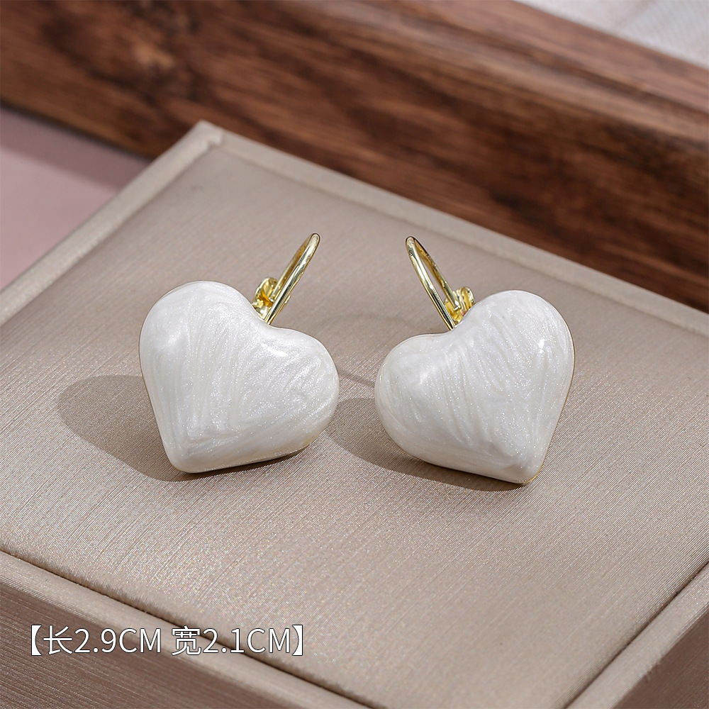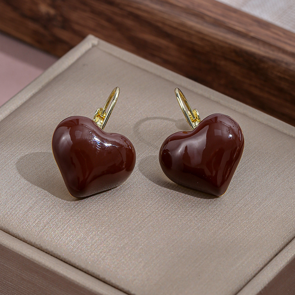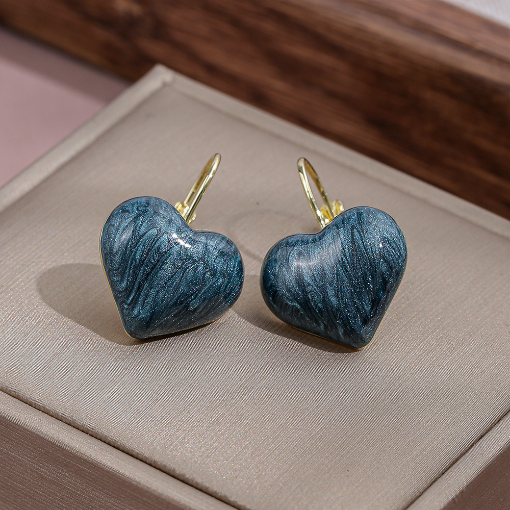Vintage Hong Kong Style Love Drop Oil Earrings Fashion High-end Sense Niche Heart-shaped Earrings Women's Simple All-match Romantic Ear Buckle