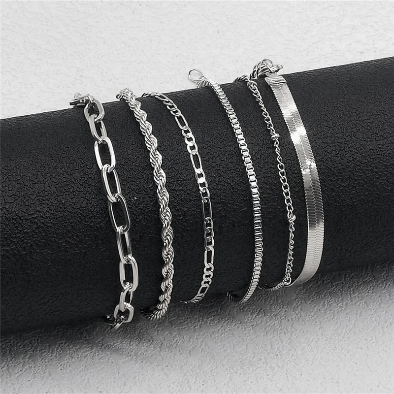 European and American Cross-Border Bohemian Normcore Hand Jewelry Metal Chain Women's Set 6 Multi-Layer Chain Simple Bracelet