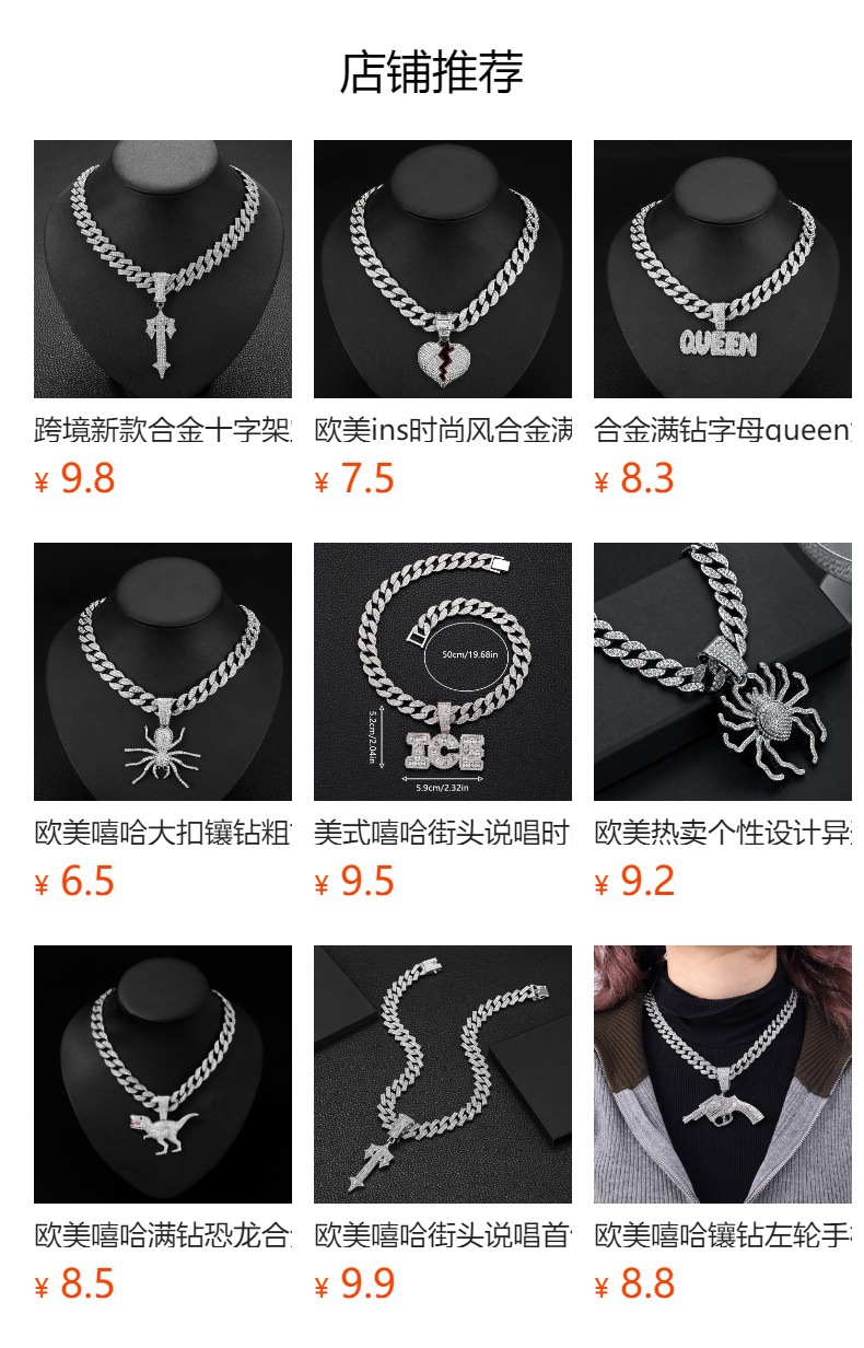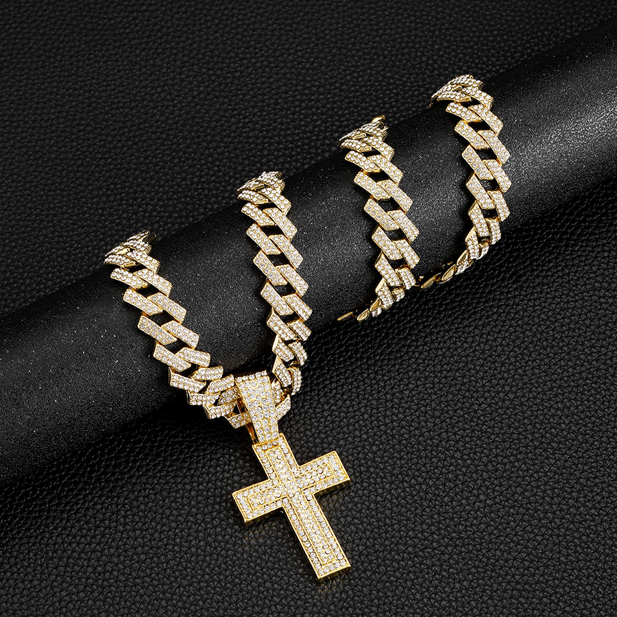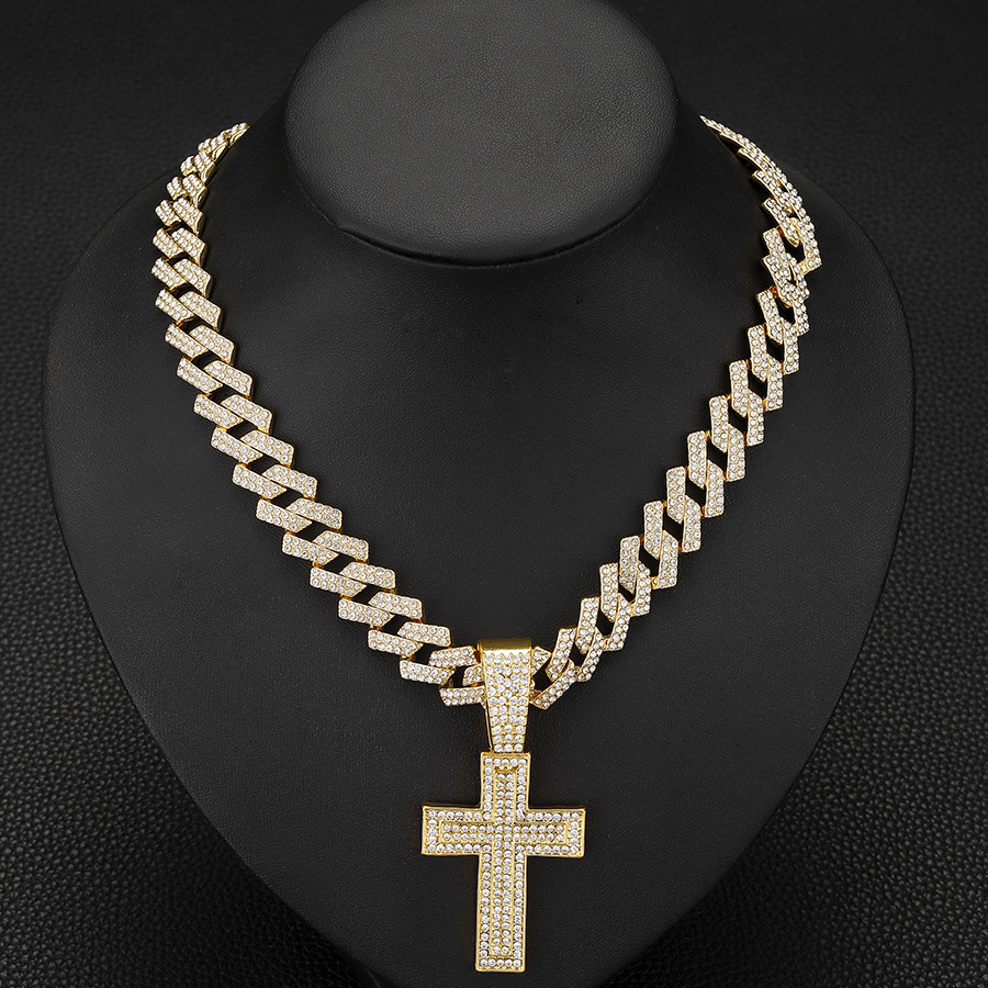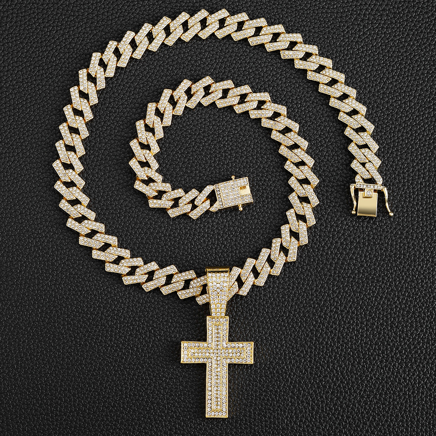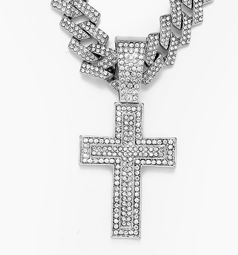 European and American Fashion Hot Selling Alloy Diamond Cross Pendant Fashion Trend Rap Diamond Men's Cuban Chain Necklace