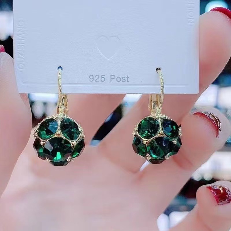 South Korea Retro Color Circle Crystal Earrings 2024 New in Light Luxury Niche Design Elegant Ear Buckle Earrings