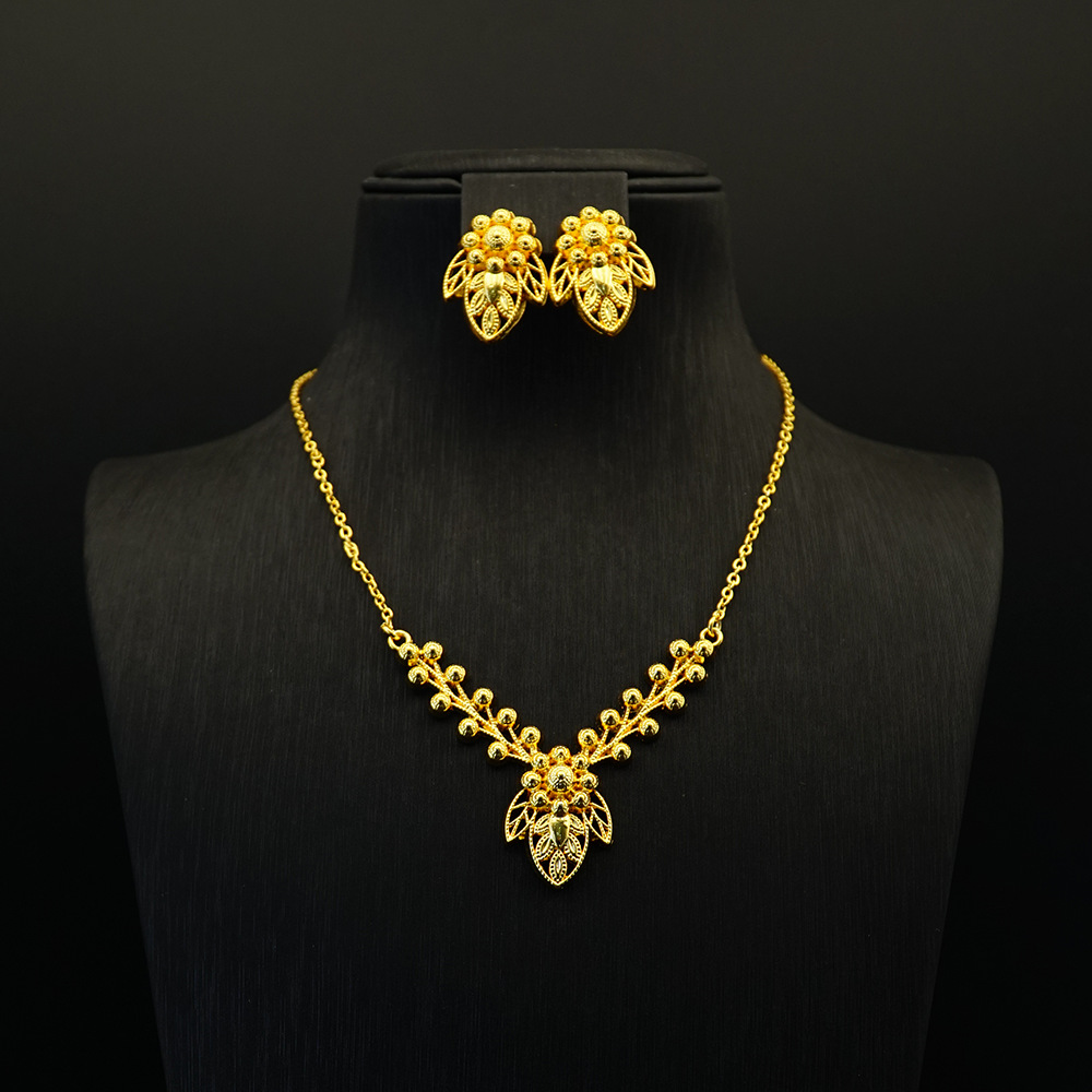 Cross Border Middle East Style Jewelry Earrings Necklace suit Women Brass Gold Plated Necklace Earrings suit Fashion Jewelry