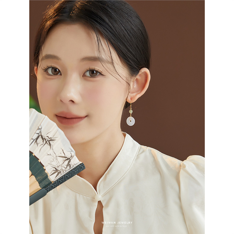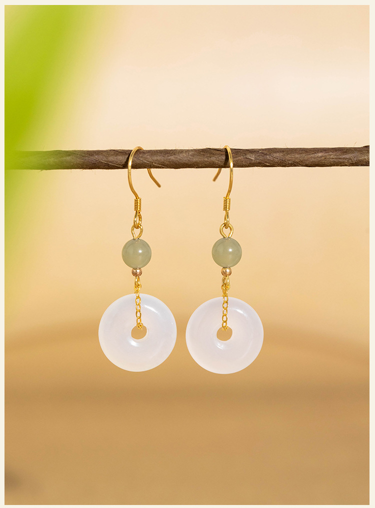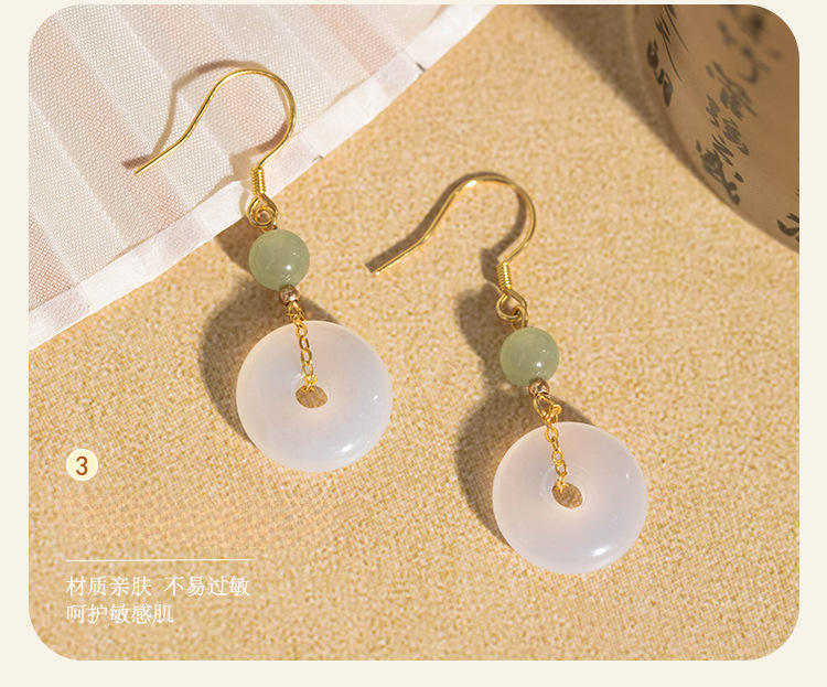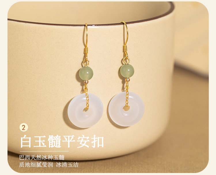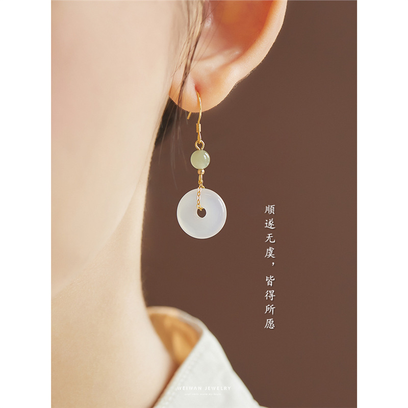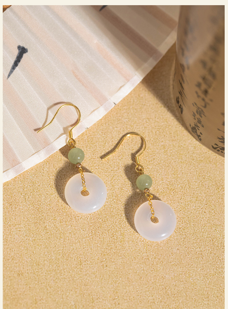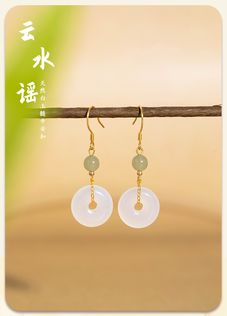 "Yunshui Ballad" Natural White Chalcedony Earrings Guofeng Metaphysics Silver Earrings Women's Safe Buckle Antique Earrings Gift