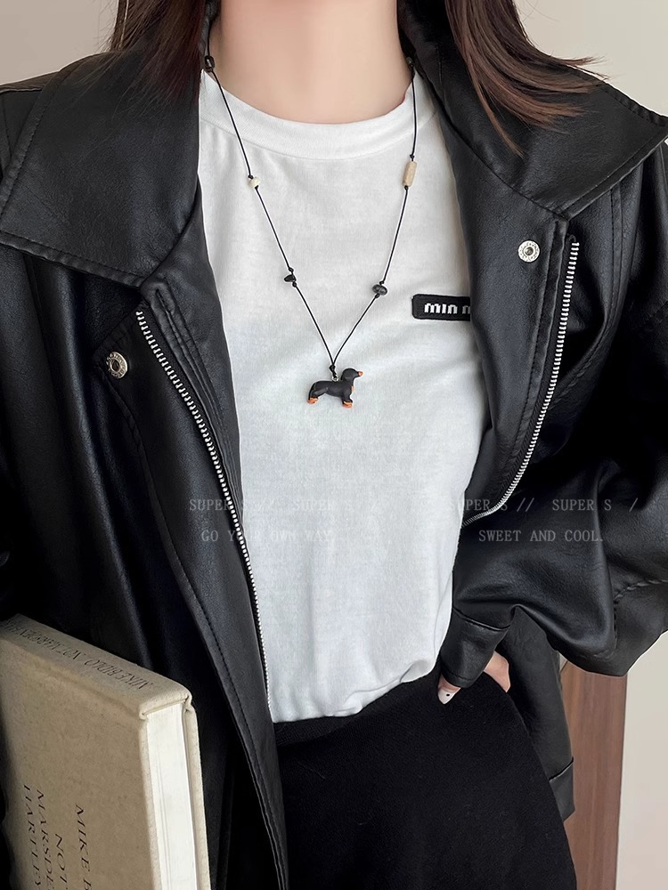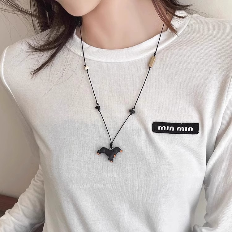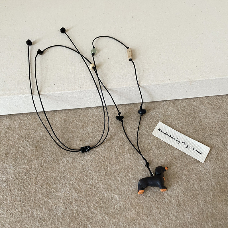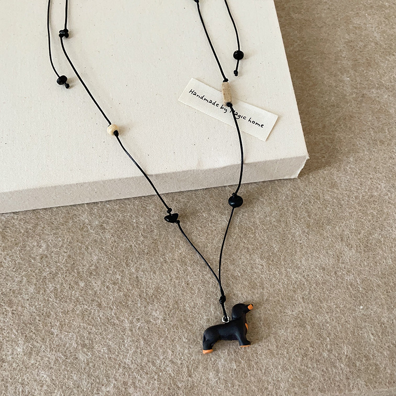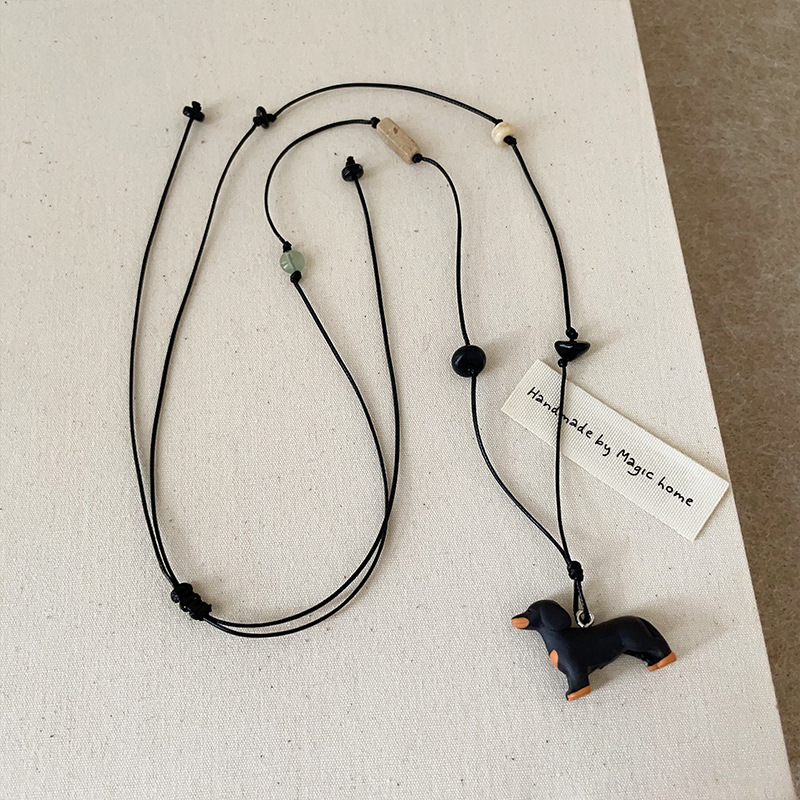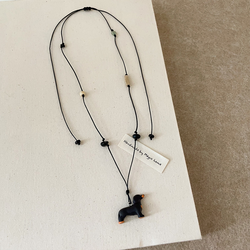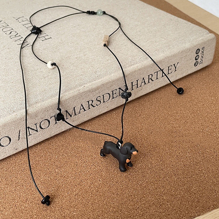 Color: Sausage dog natural stone black rope necklace