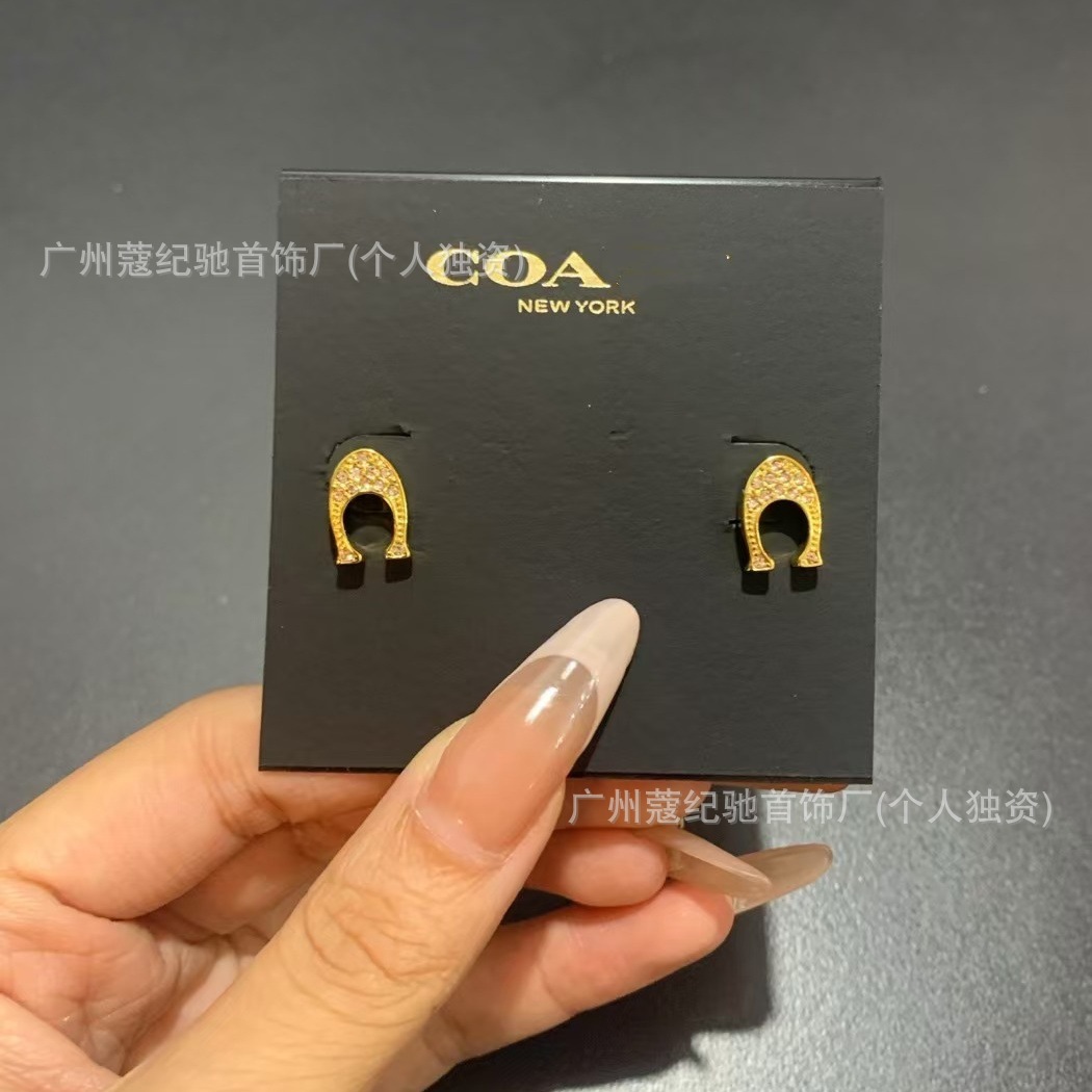 Full diamond c gold color earrings
