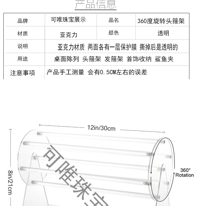 Acrylic Headband Rack Shark Clip Storage Props Desktop Rotating Jewelry Rack Bracelet Necklace Jewelry Display Shelf