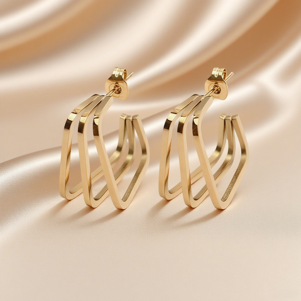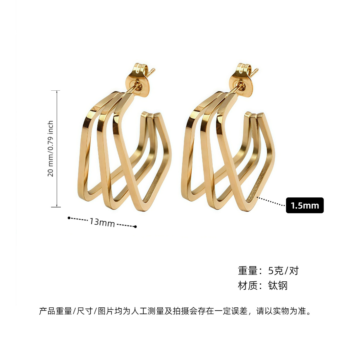Classic Hoop Geometric Splicing Earrings, Hot-Selling Cross-Border Simple Stainless Steel Earrings, In-Stock Wholesale, Fashionable and Versatile