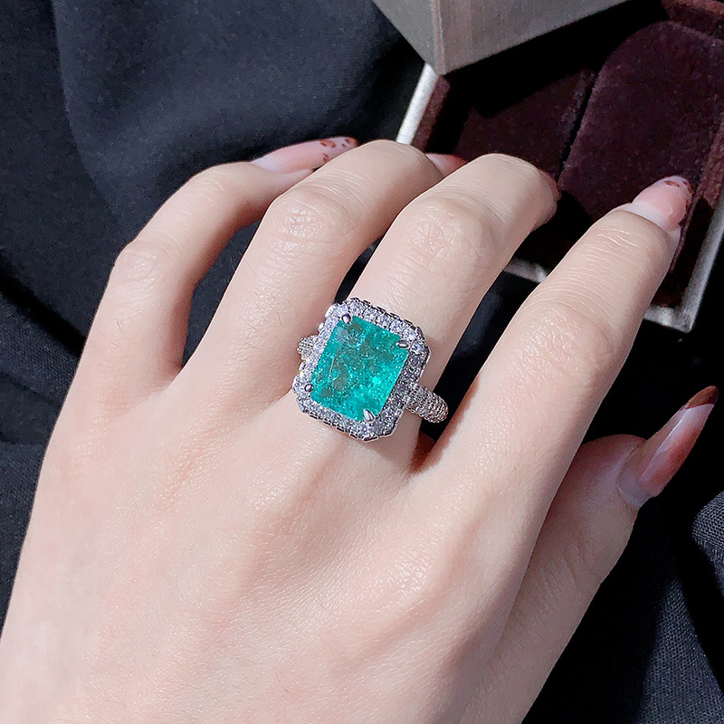 2025 Jewelry Paraíba Imitation Emerald Tourmaline Ring Live New Full Diamond Princess Powder Opening Ring for Women