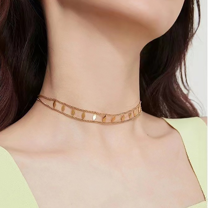 Fashion Explosions Heavy Industry Irregular Diamond Sequin Clavicle Necklace Sexy Necklace Titanium Steel Plated 18K Gold Not Falling