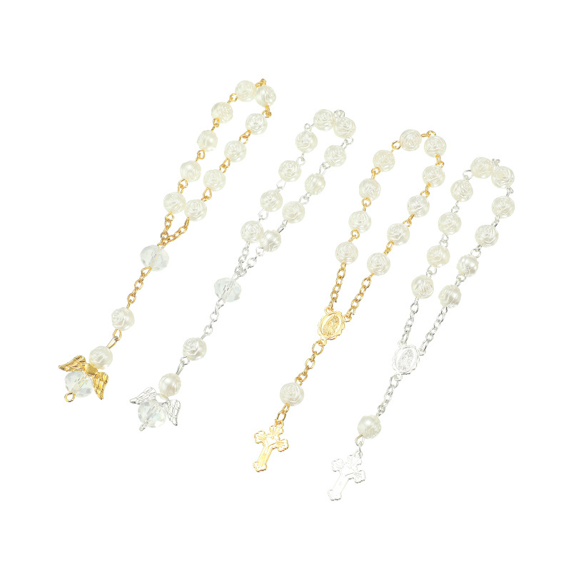Cross-border Hot Angel Wings Rose Baptism Beads Pearl Bracelet Rosary Cross