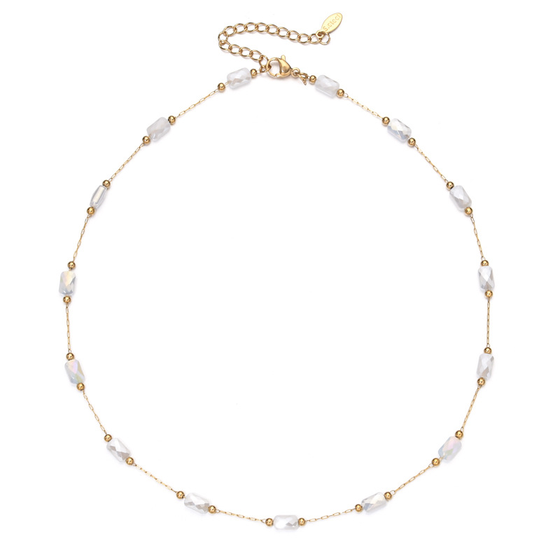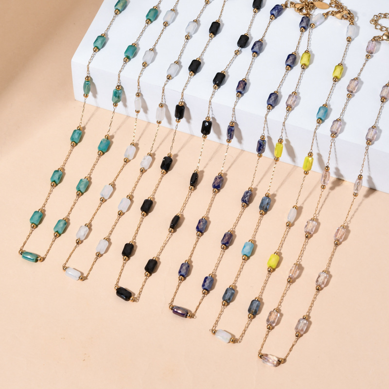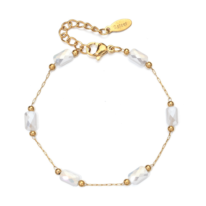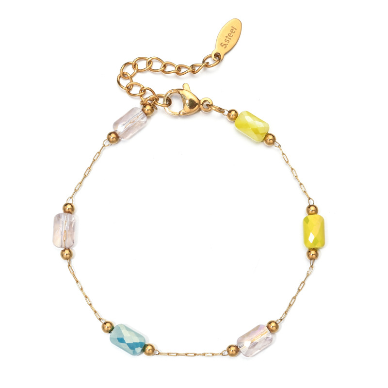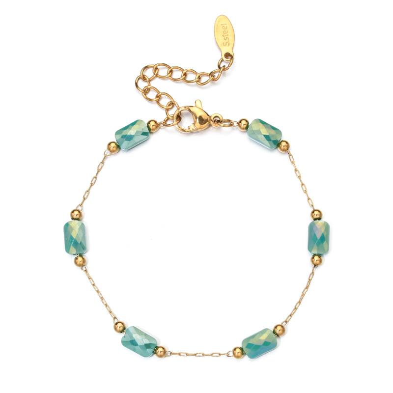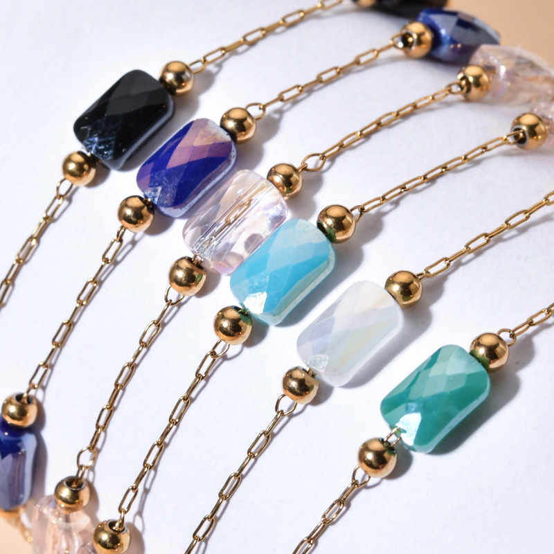 Cross-border minority design sense of square crystal necklace bracelet does not fade drop oil stainless steel bracelet can be customized DIY