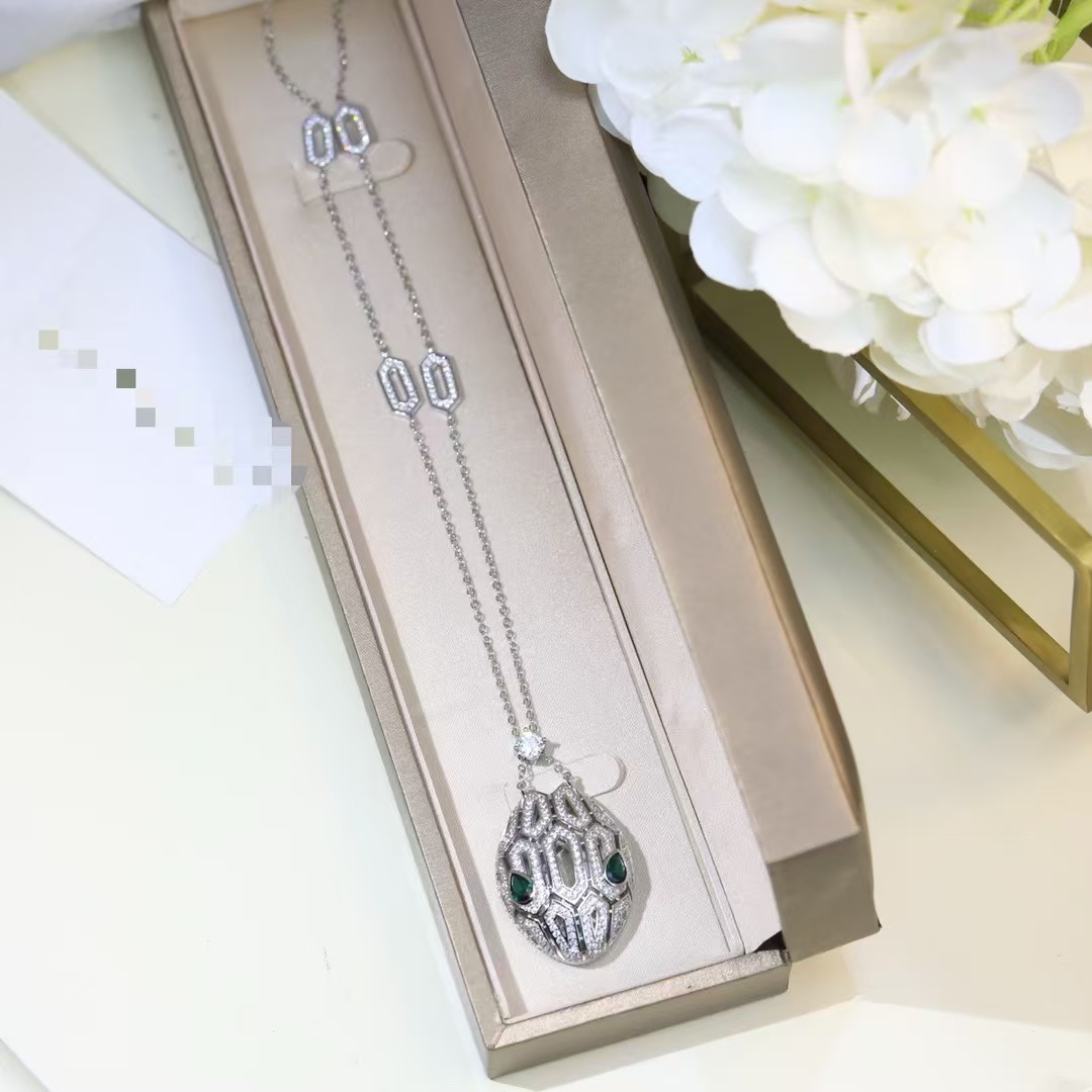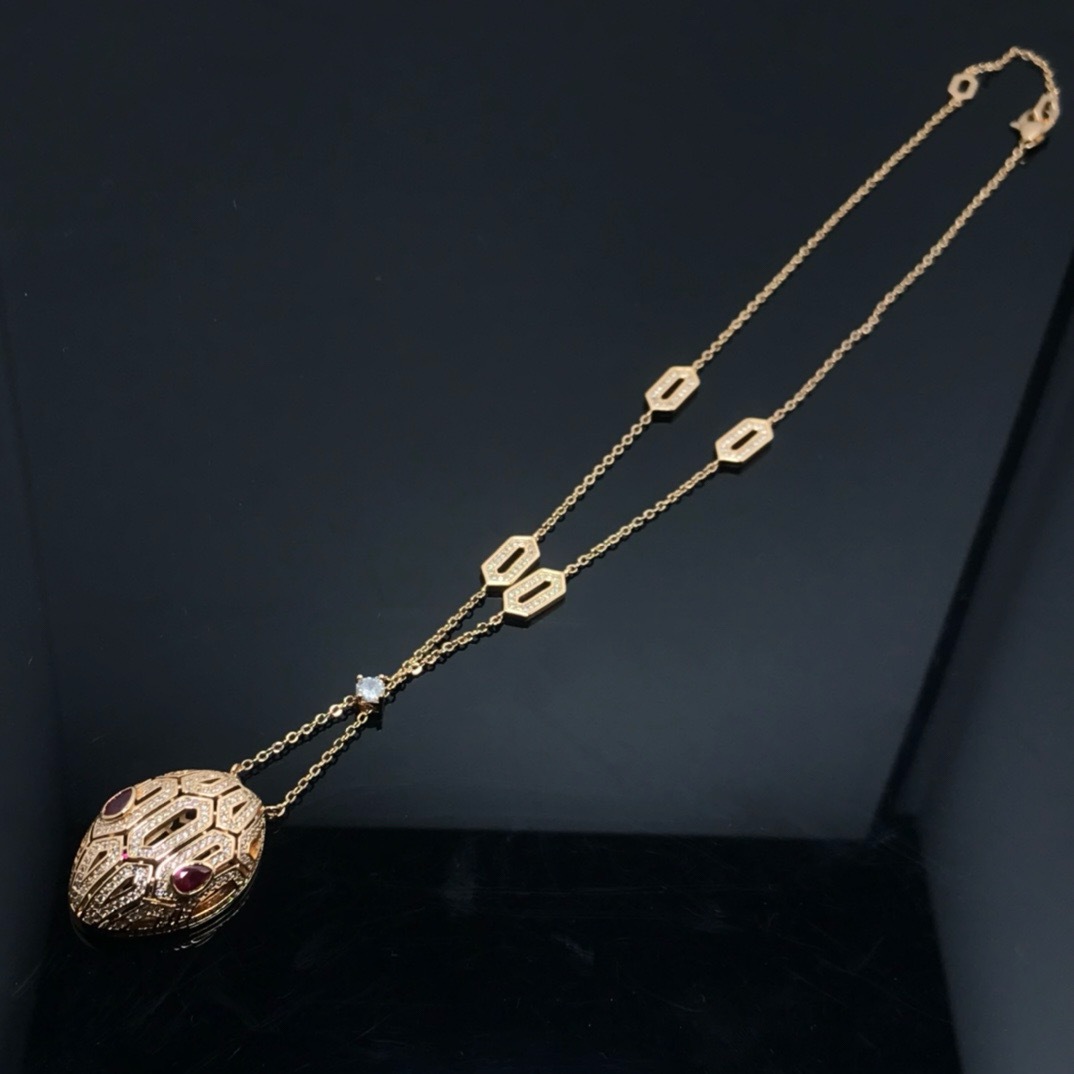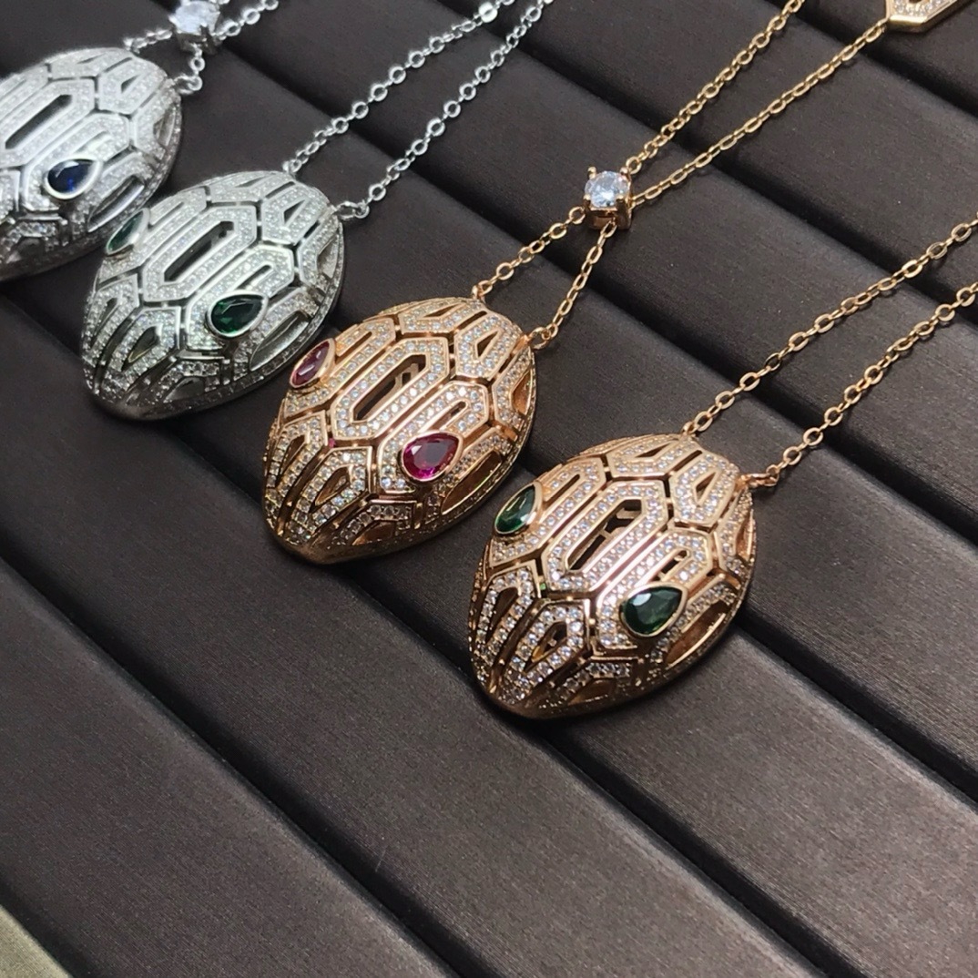 High Edition Baojia V Gold Eye Full Diamond Hollow Snake Head Necklace Luxury Fashion Joker Jewelry Pendant Factory