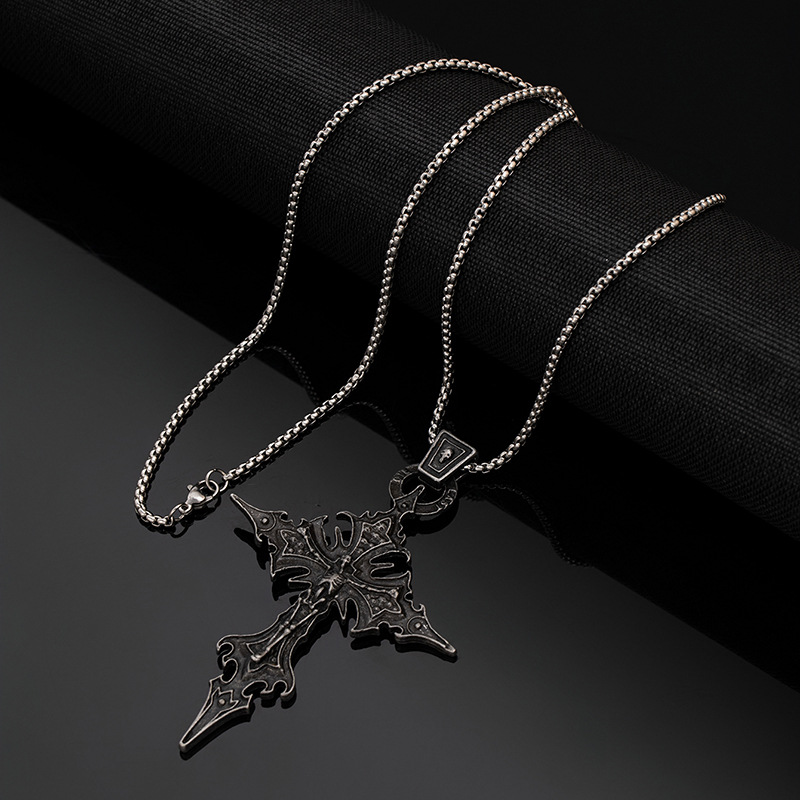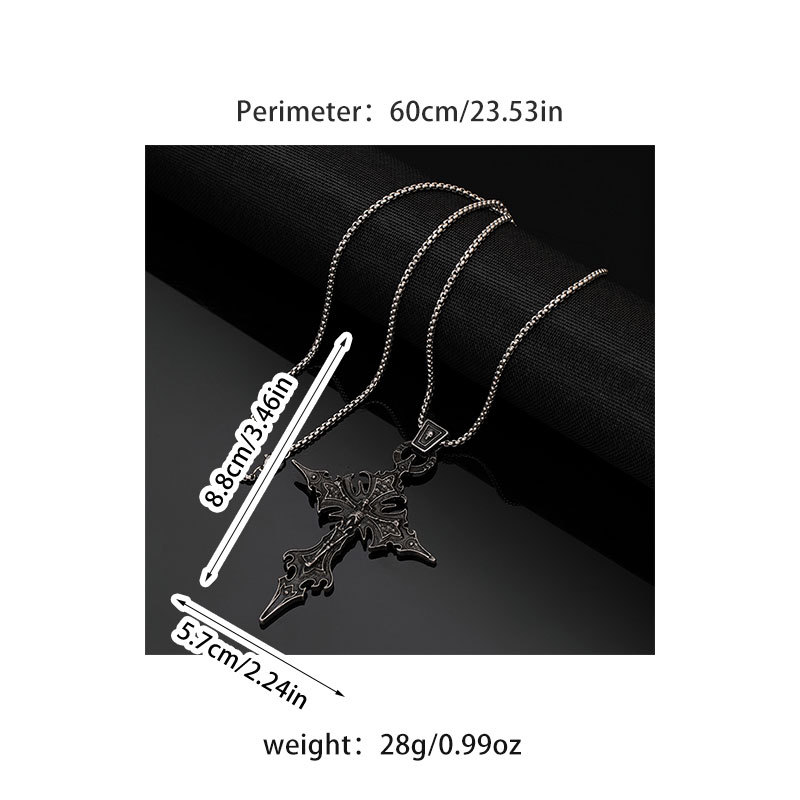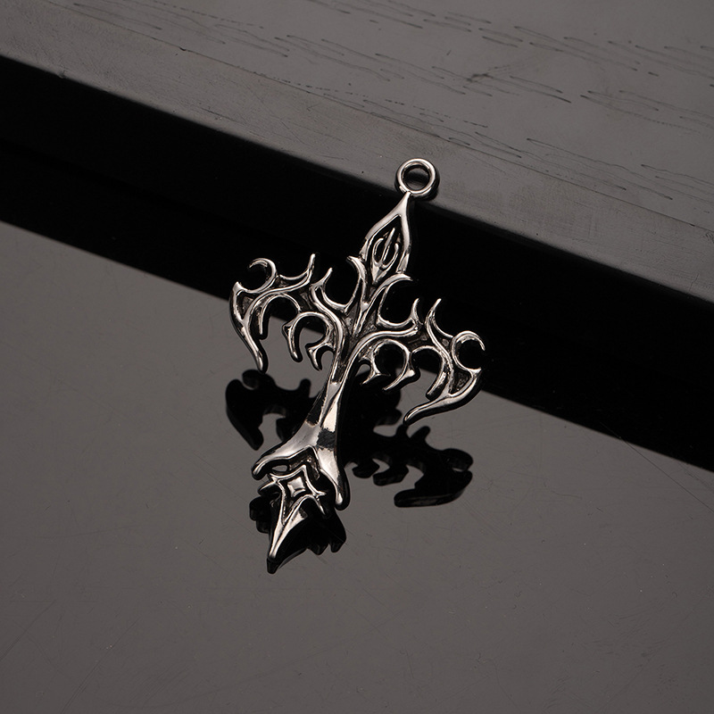 欧美跨境热销钛钢火焰十字架项链个性朋克毛衣链复古潮酷男士项饰品批发货源