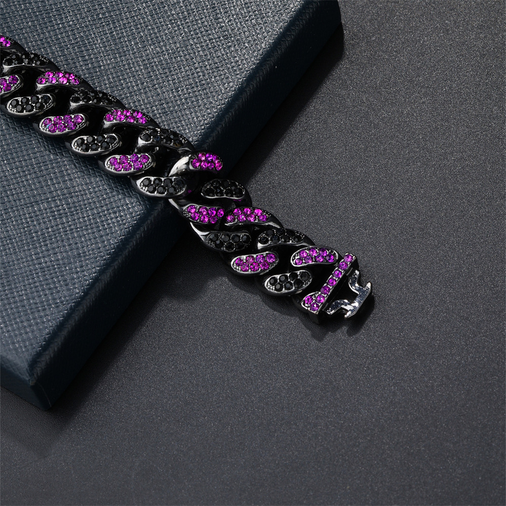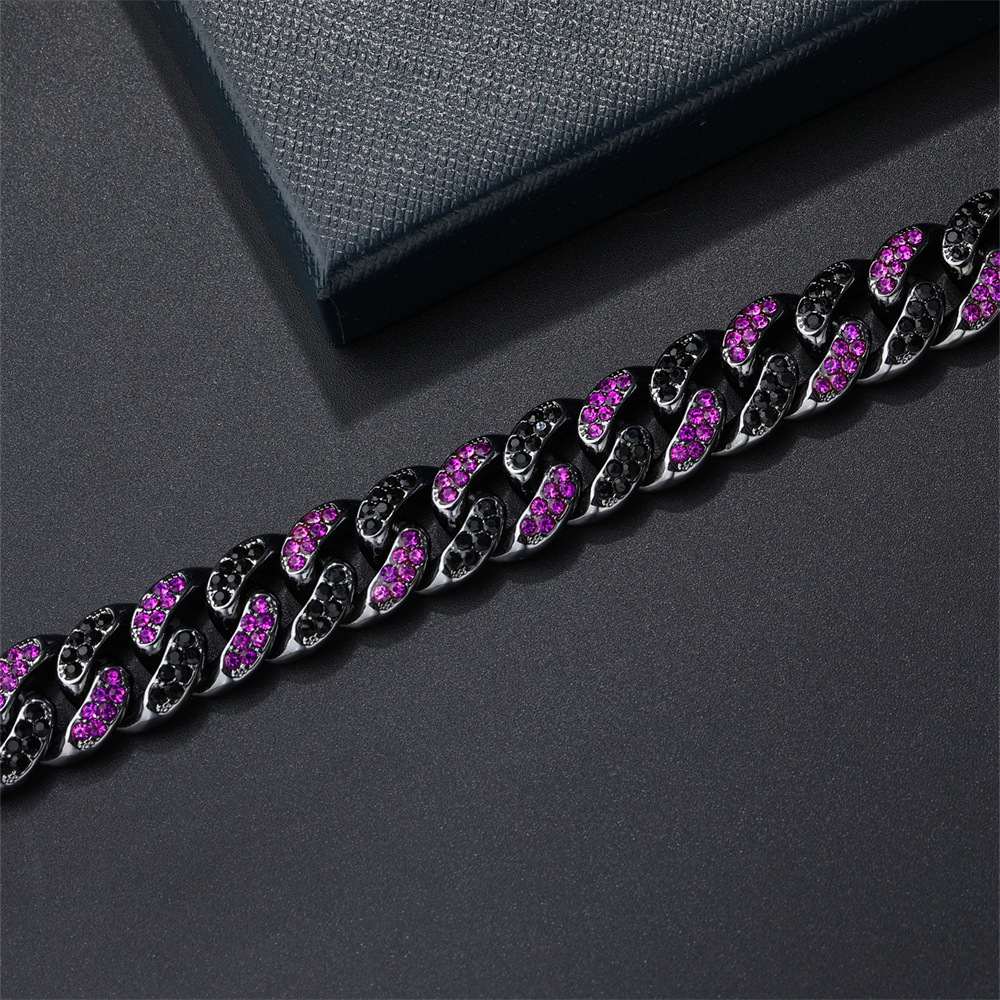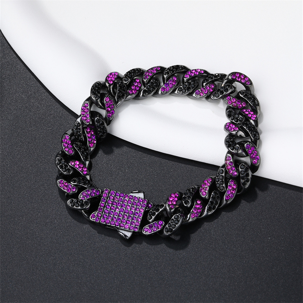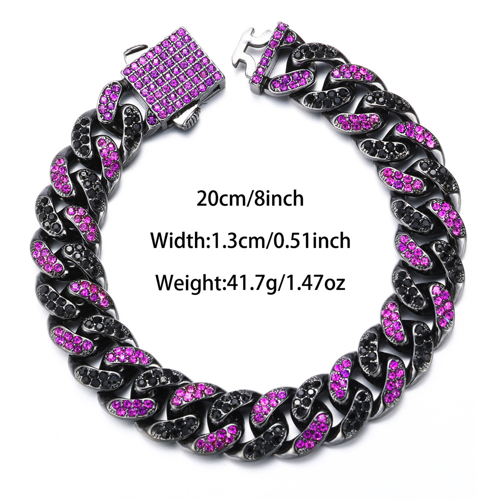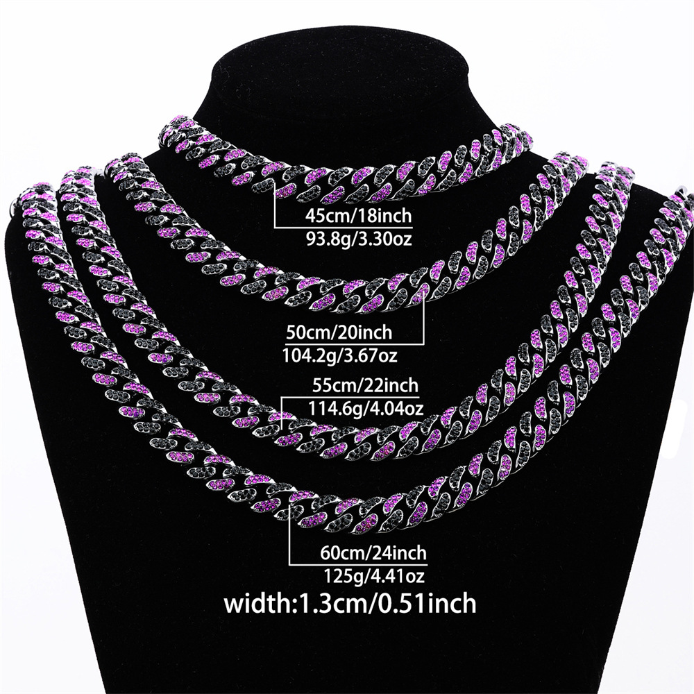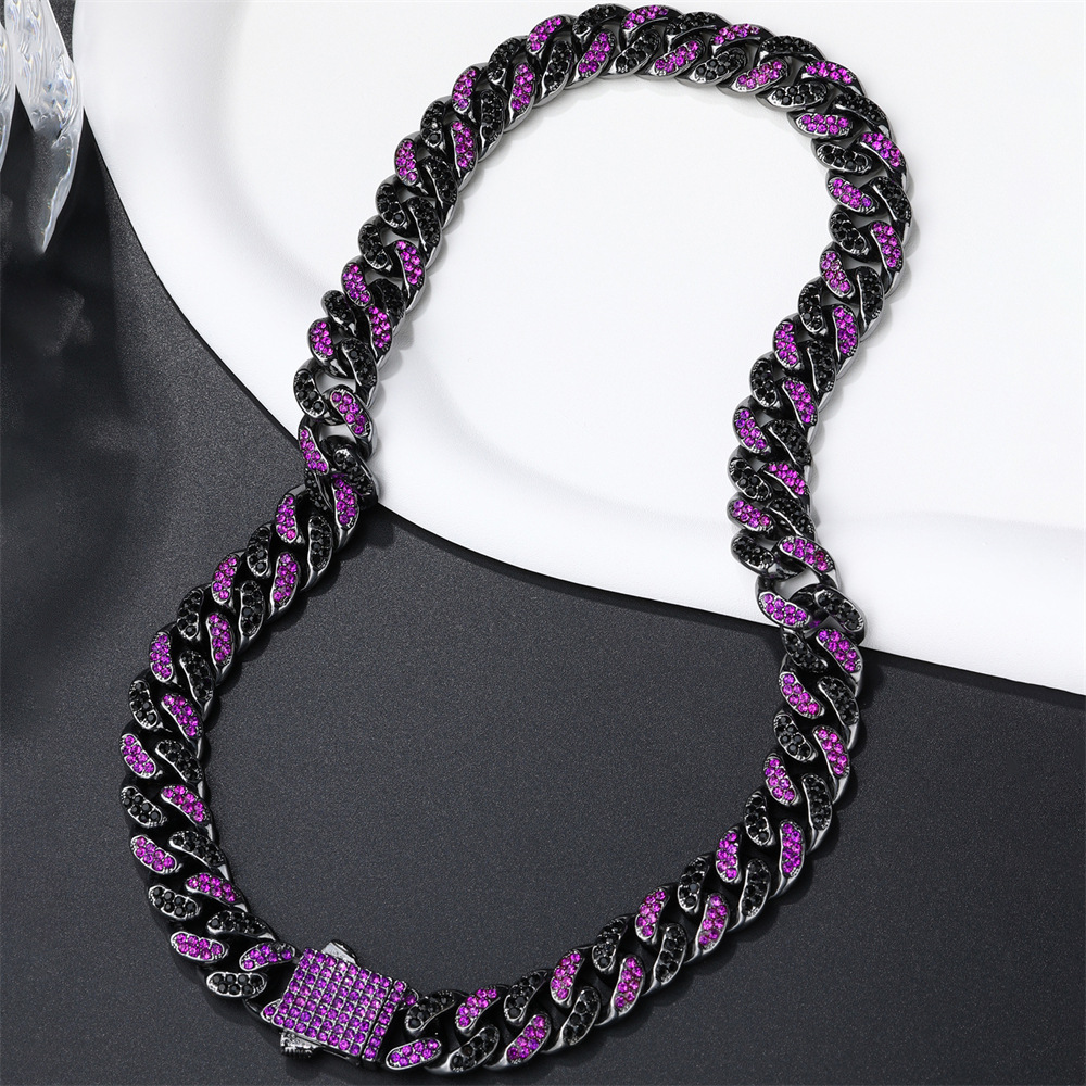 Hip Hop Men's Black Purple Diamond Cuban Chain Necklace Bracelet Line Exaggerated Personality Rap Rhinestone Accessories