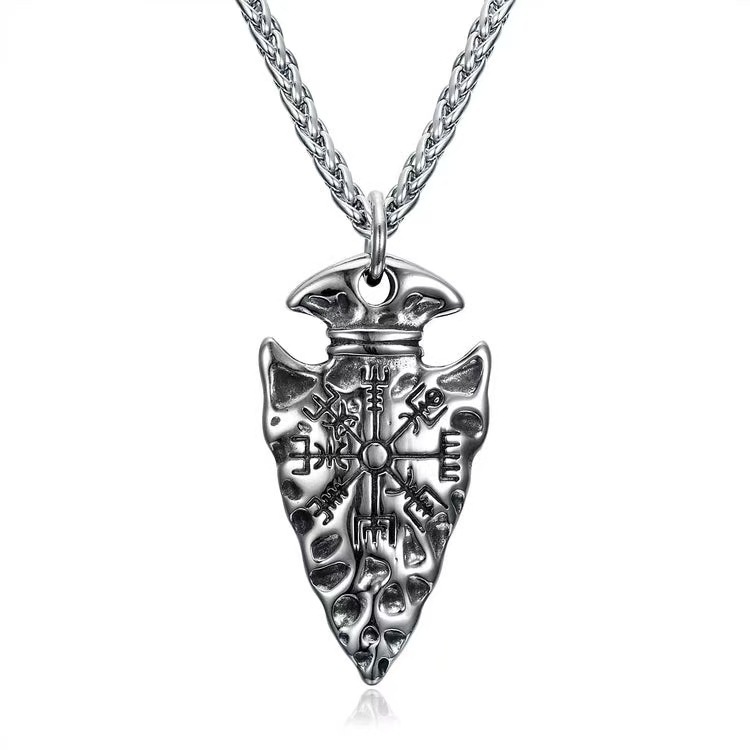跨境欧美风热卖维京北欧项链三角罗盘指南针钛钢链男士潮酷项饰品批发货源