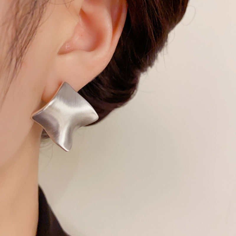 Color: Dumb silver-metal brushed diamond earrings (thick gold plating)