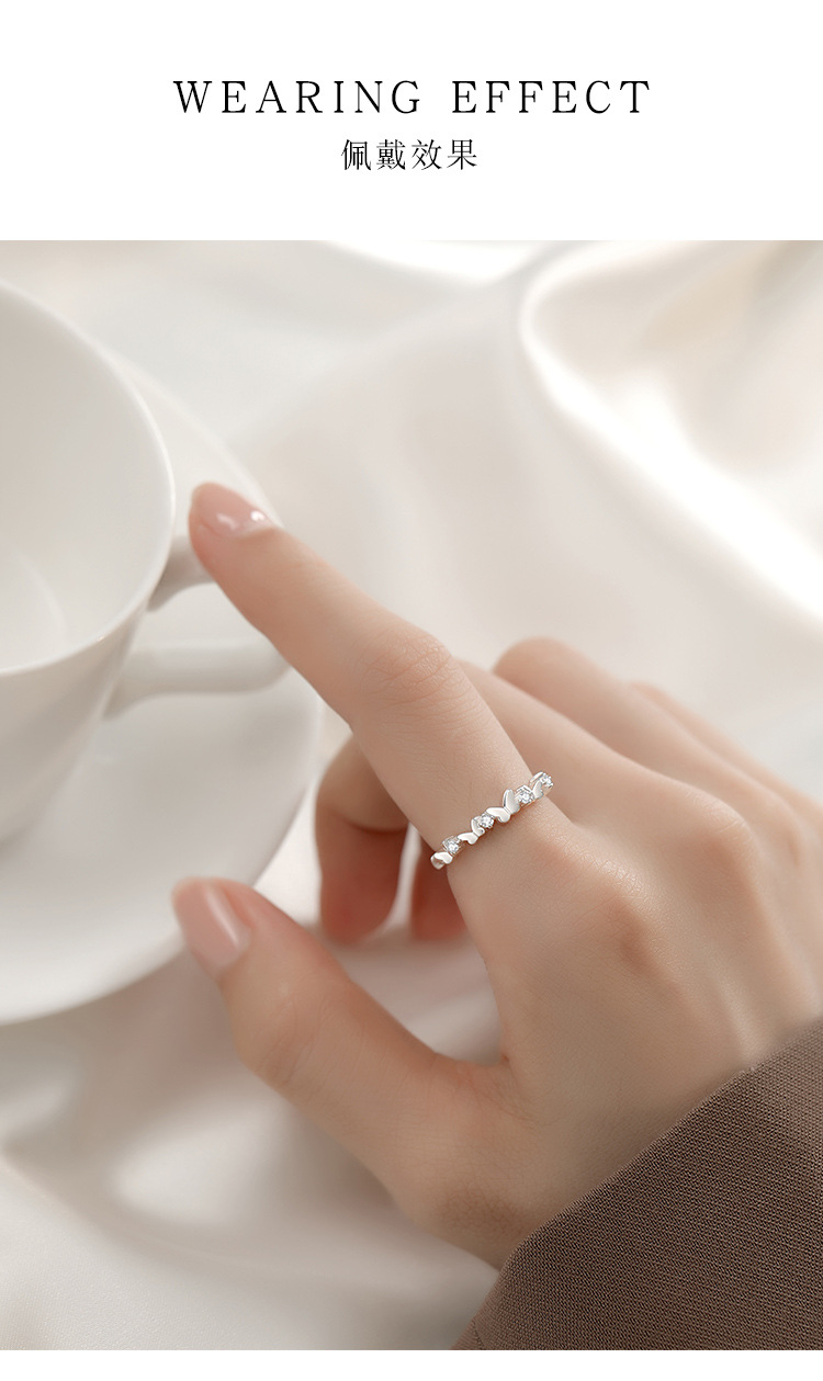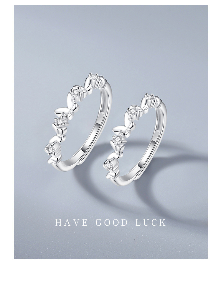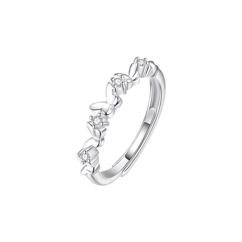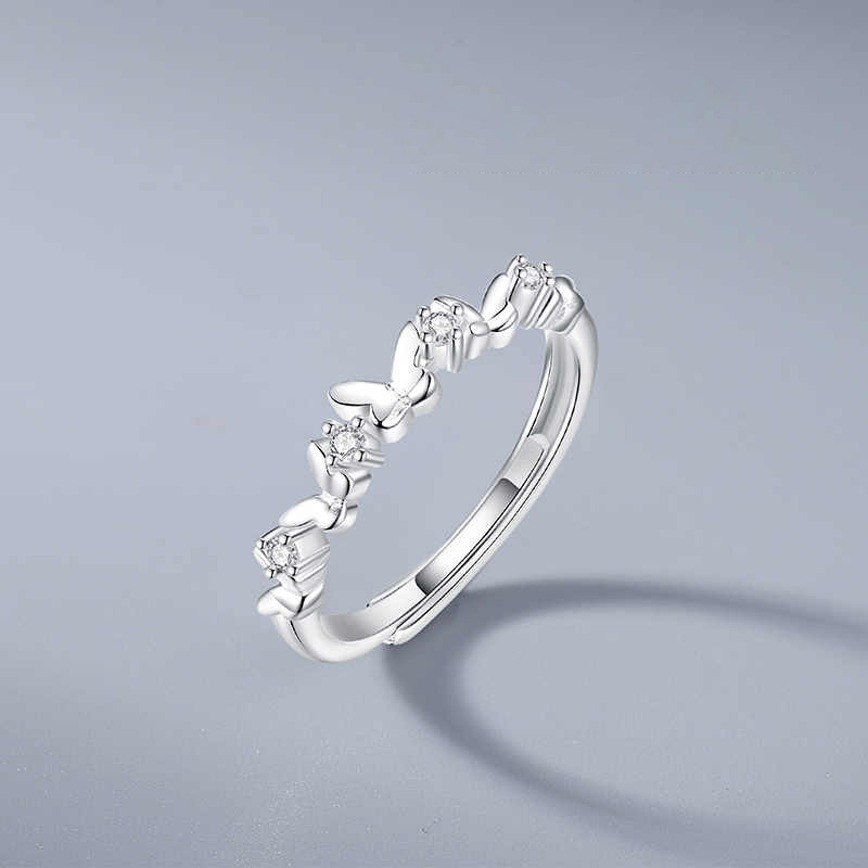 S925 Sterling Silver Mori Butterfly Ring Women's Niche Design Sense Small Clear Opening Flash Diamond Ring for Girlfriend Gift