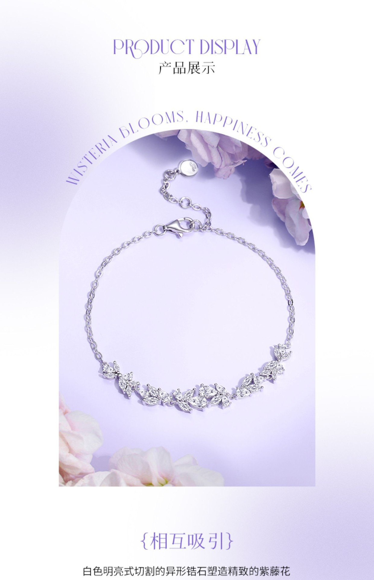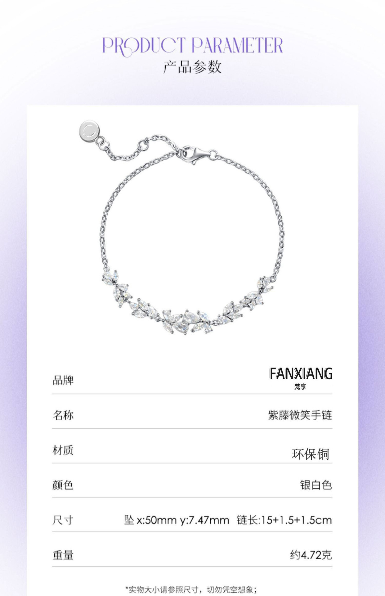 Wisteria Flower Zhao Yingzi's Same Style Smile Necklace Zircon Bracelet Women's Niche Design Accessible Luxury High-End Clavicle Necklace
