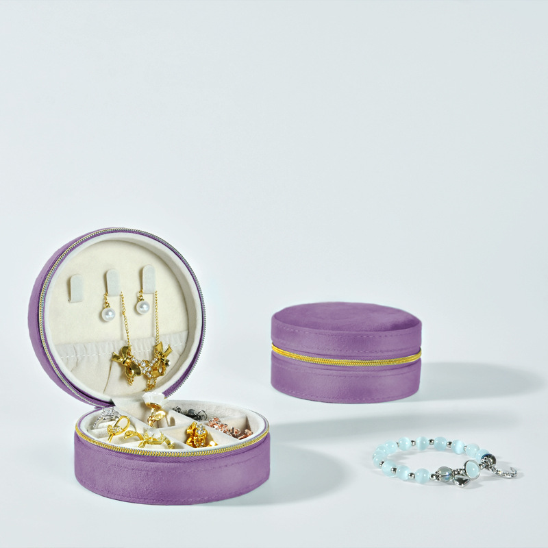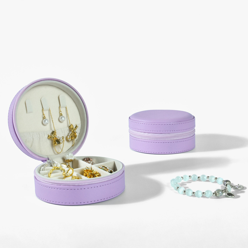 Specifications and models: Round pu leather-light purple; jewelry storage box