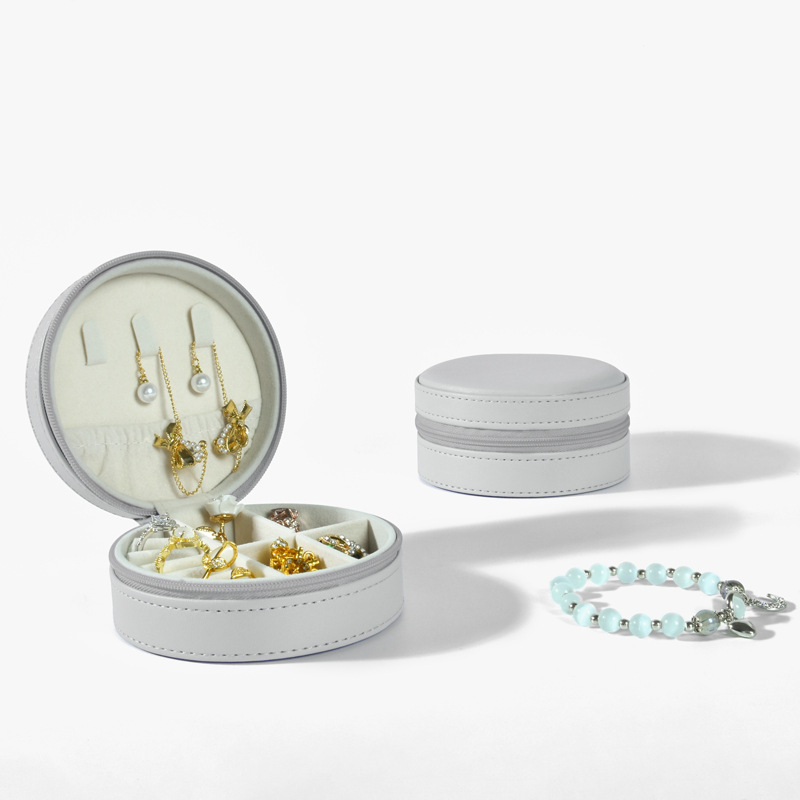 Specifications and models: Round pu leather-silver; jewelry storage box