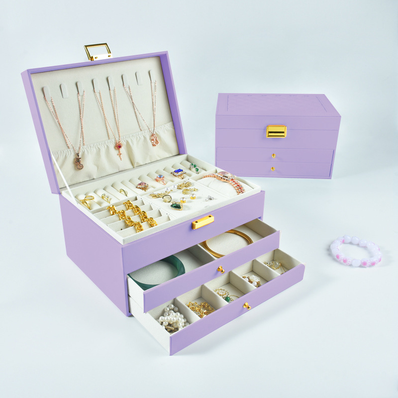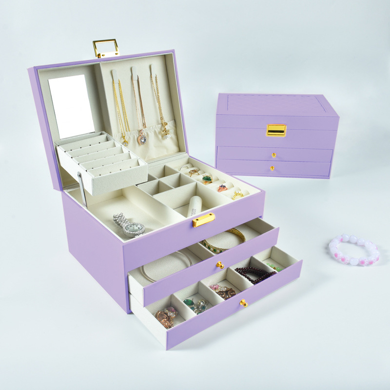 Specifications and models: No mirror-three-layer jewelry box-light purple; jewelry storage box