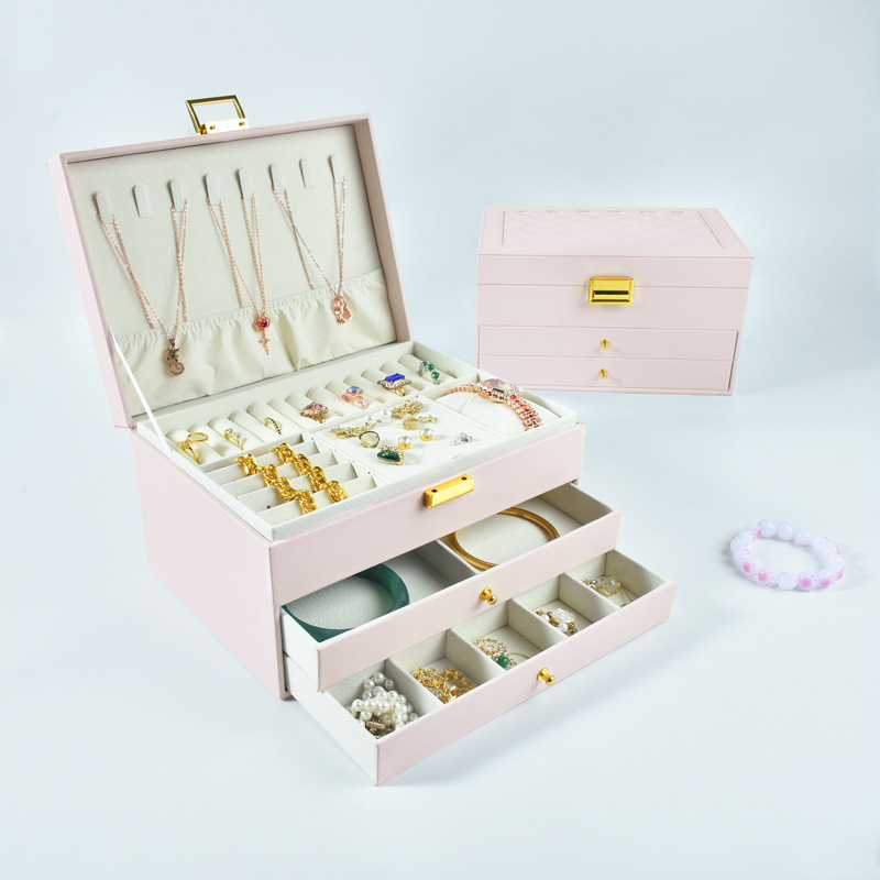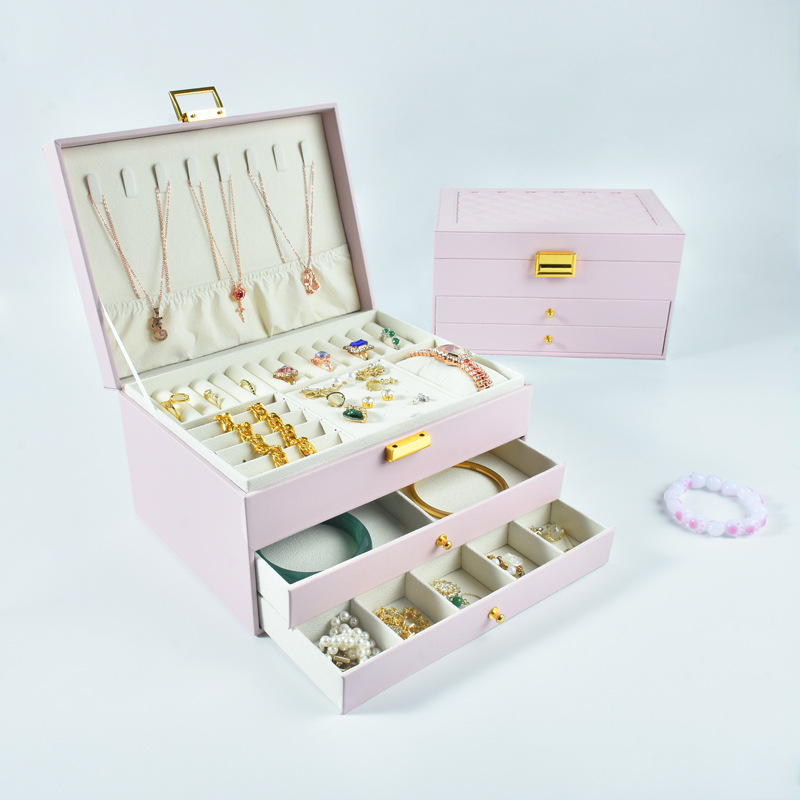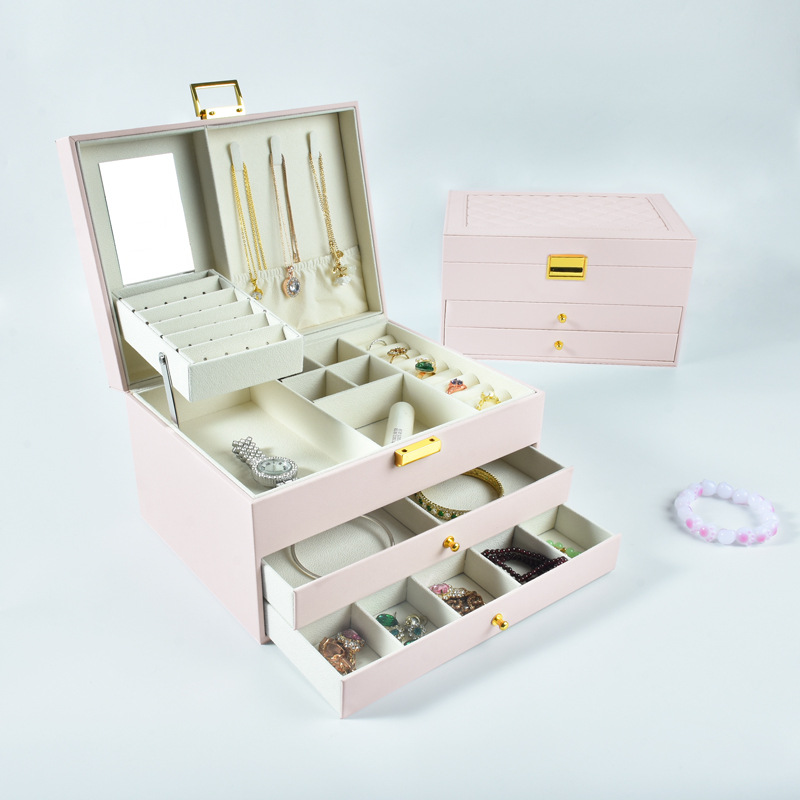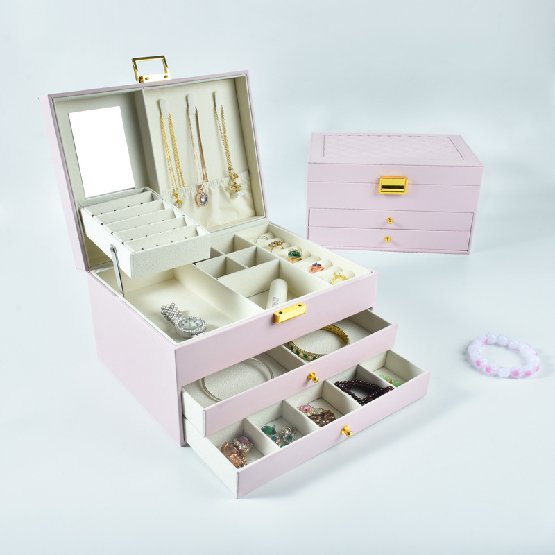 Specifications and models: No mirror-three-layer jewelry box-light pink; jewelry storage box